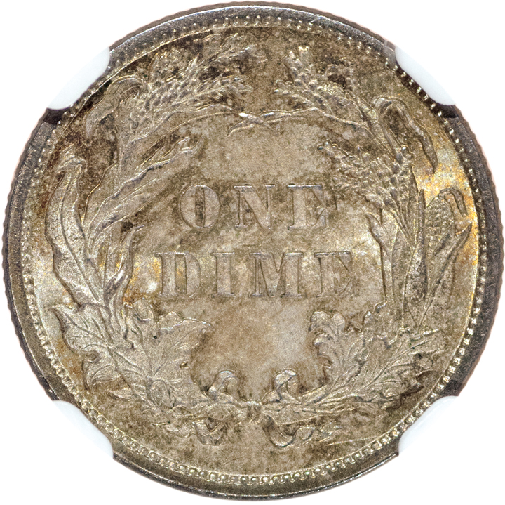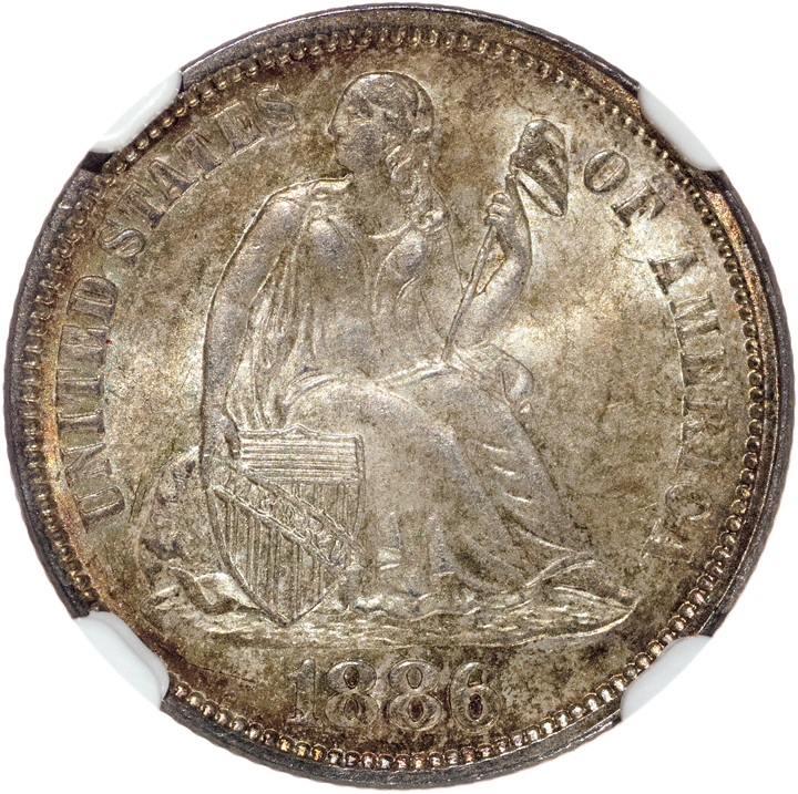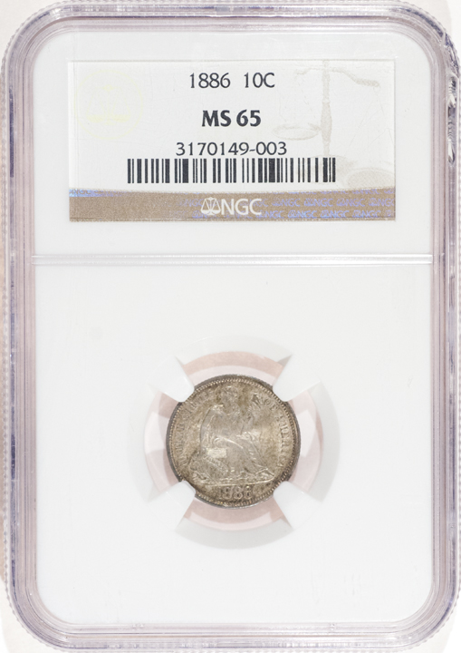 1886 Seated Liberty Dime. NGC graded Mint State-65.