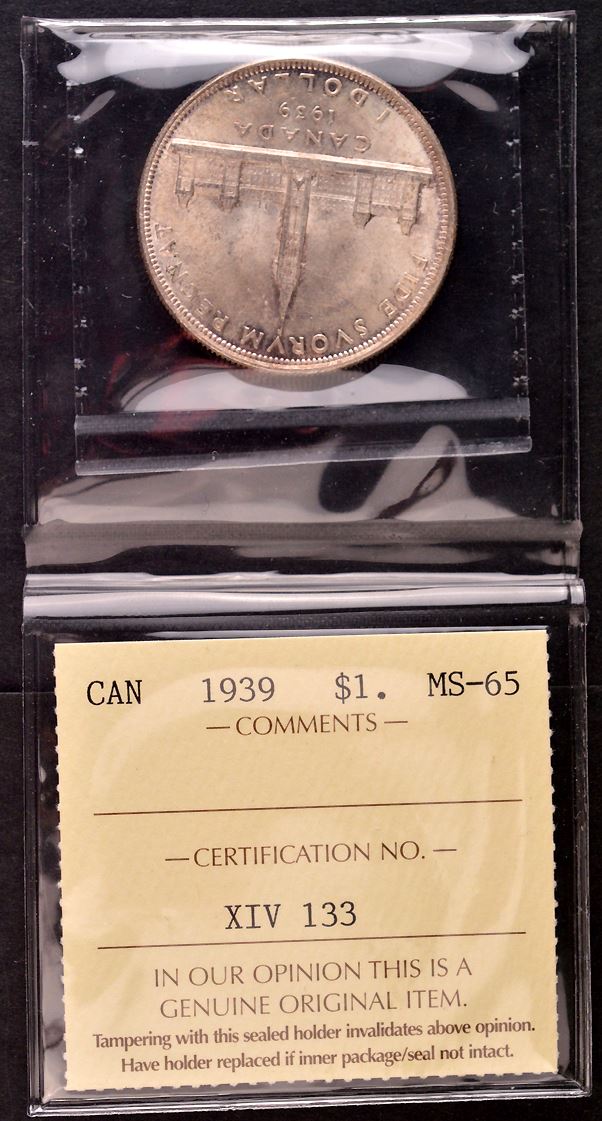 1939, graded by ICCS Mintstate-65. Light toning with underlying lustre.