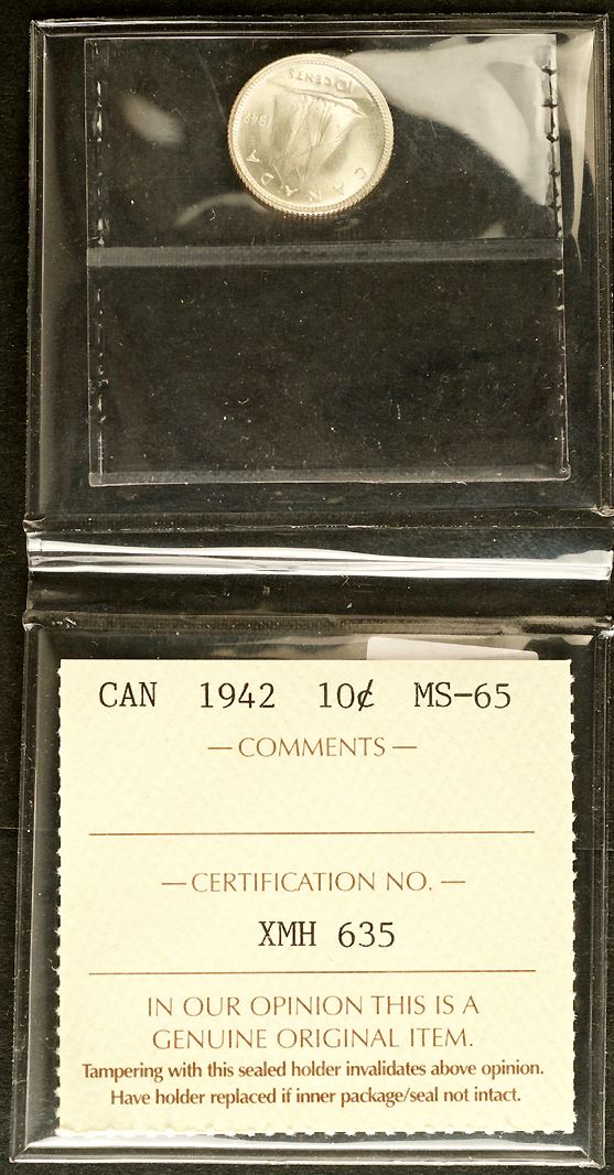 1942, graded by ICCS Minstate-65. A lovely white and frosty Gem example.
