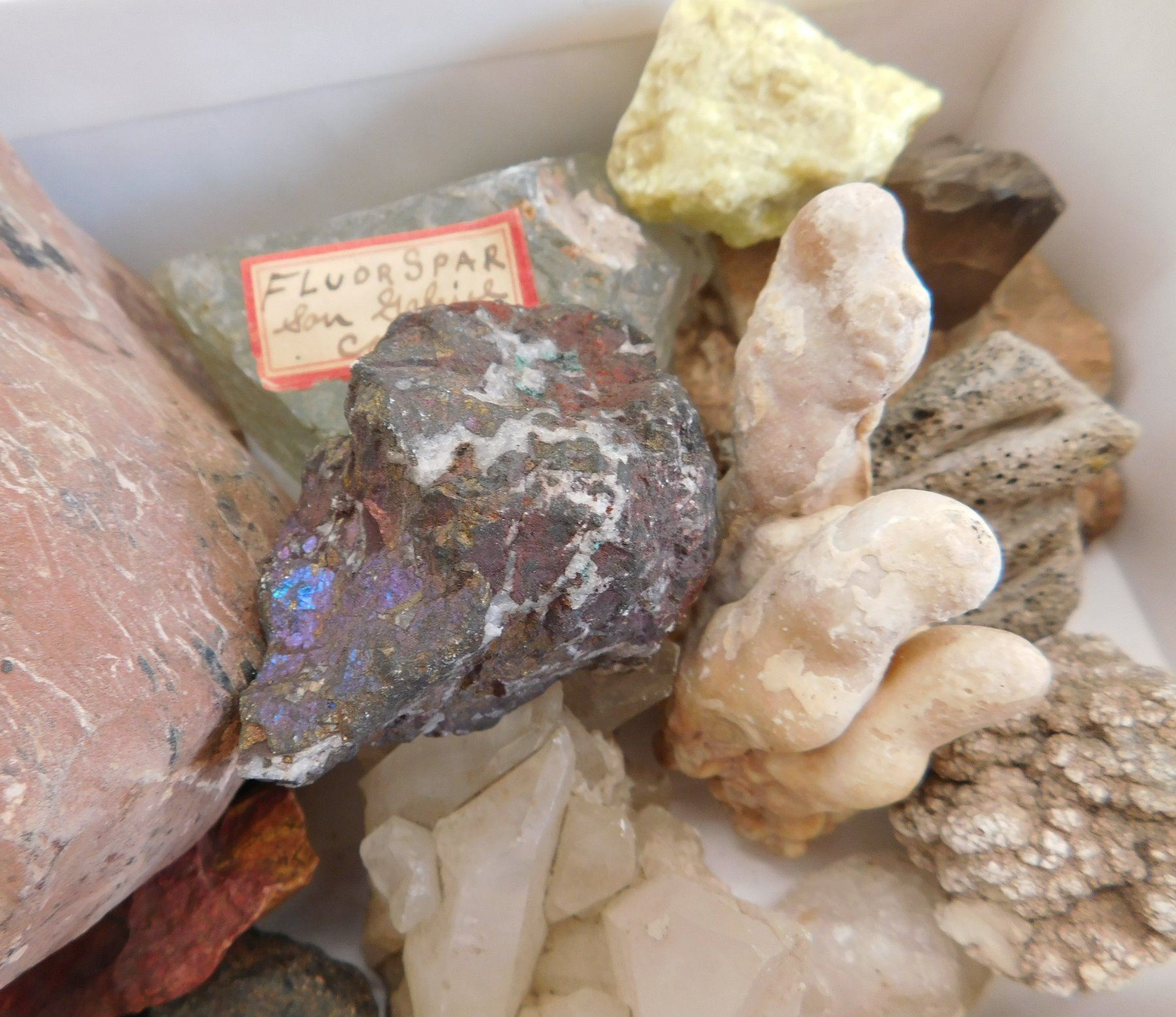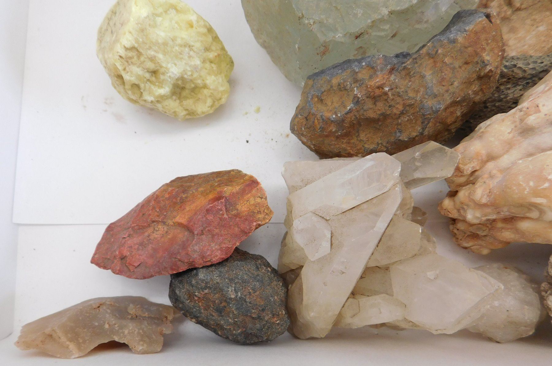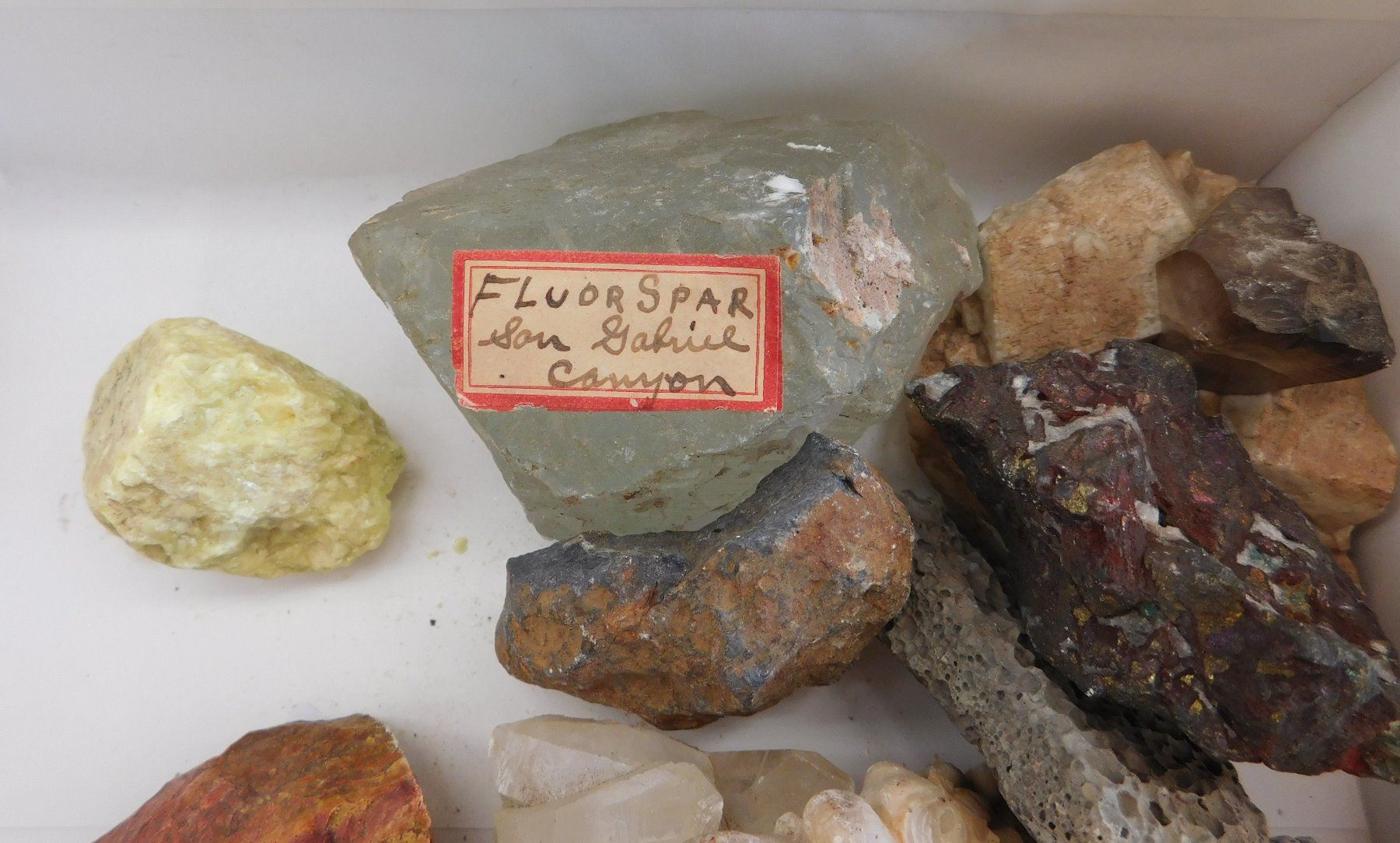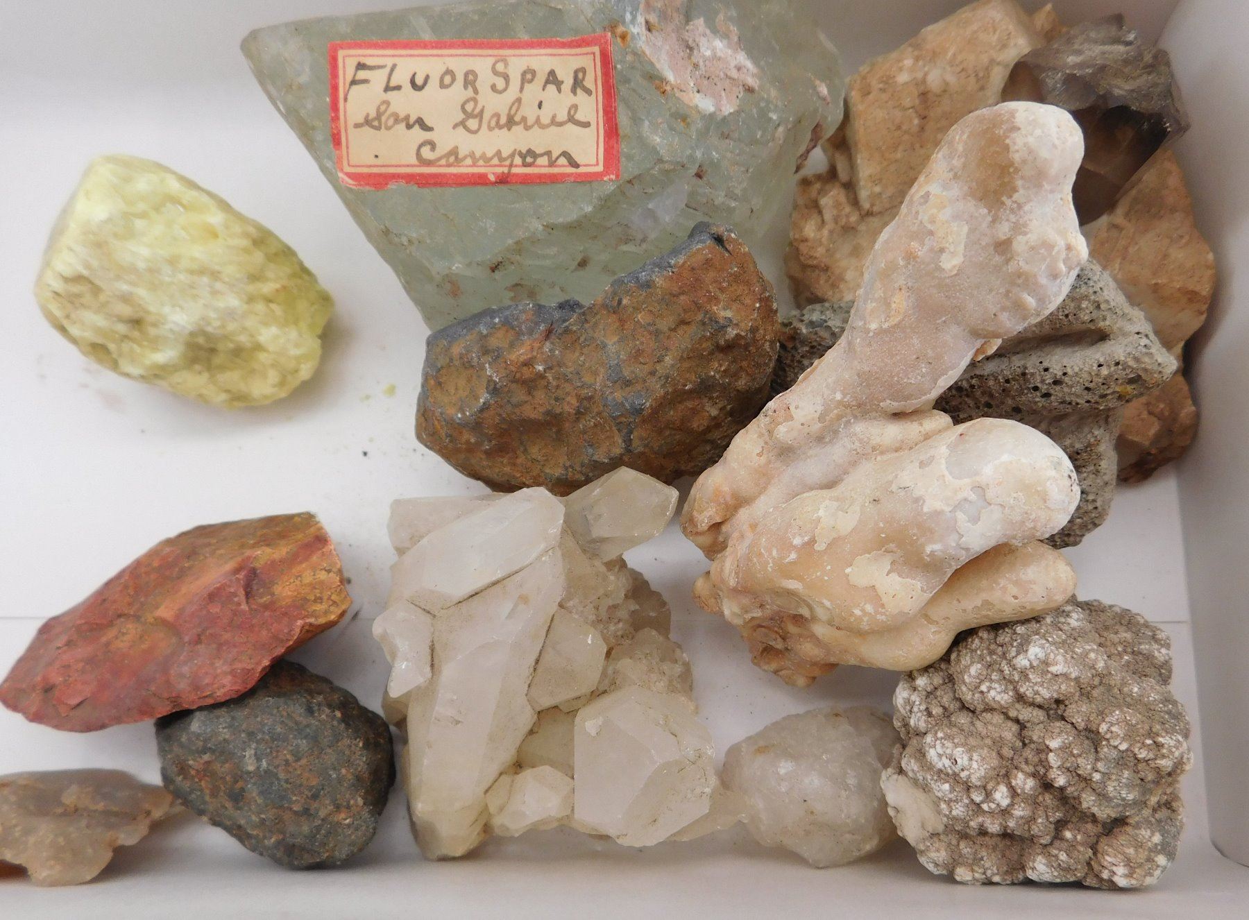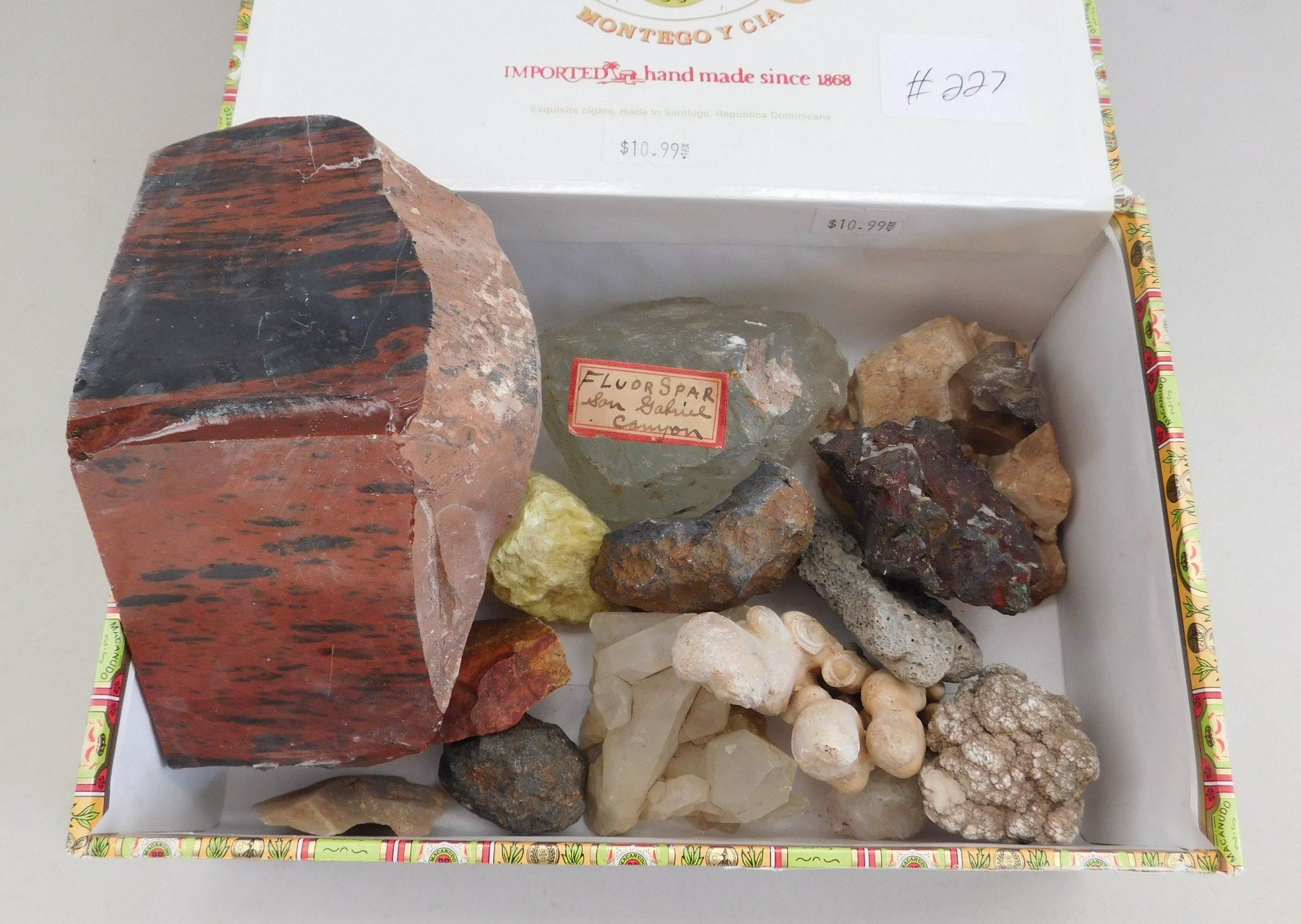 Gem & Mineral Collection, age unknown. Lot contains obsidian, quartz and others. Largest item measures 6" x 4". Western USA. Nice group of natural minerals and gemstones. Condition: As found, see images. Shipping: $26.50 w/insurance and signature.