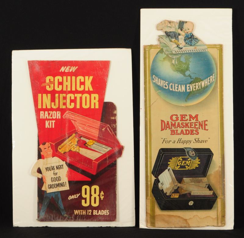 Two Cardboard Razor Advertisements, Larger Measures 37" x 14"