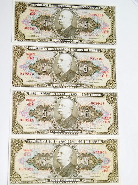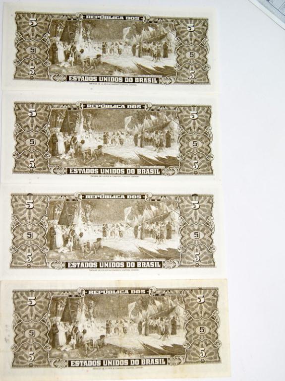 (4) Gem Uncirculated Brazilian Bank Notes 5 Peso - Sold Times the Money