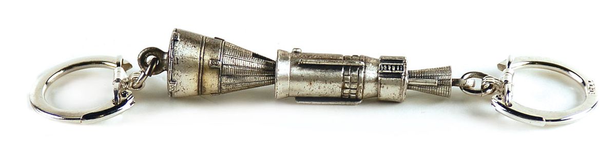 Stylish key ring, approximately 4-inches in length, designed as an Agena rocket and a Gemini capsule that can be ‘docked’ and ‘undocked.’ The item originated from the collection of Jim McDivitt. Accompanied a certificate of authenticity from Novaspace.