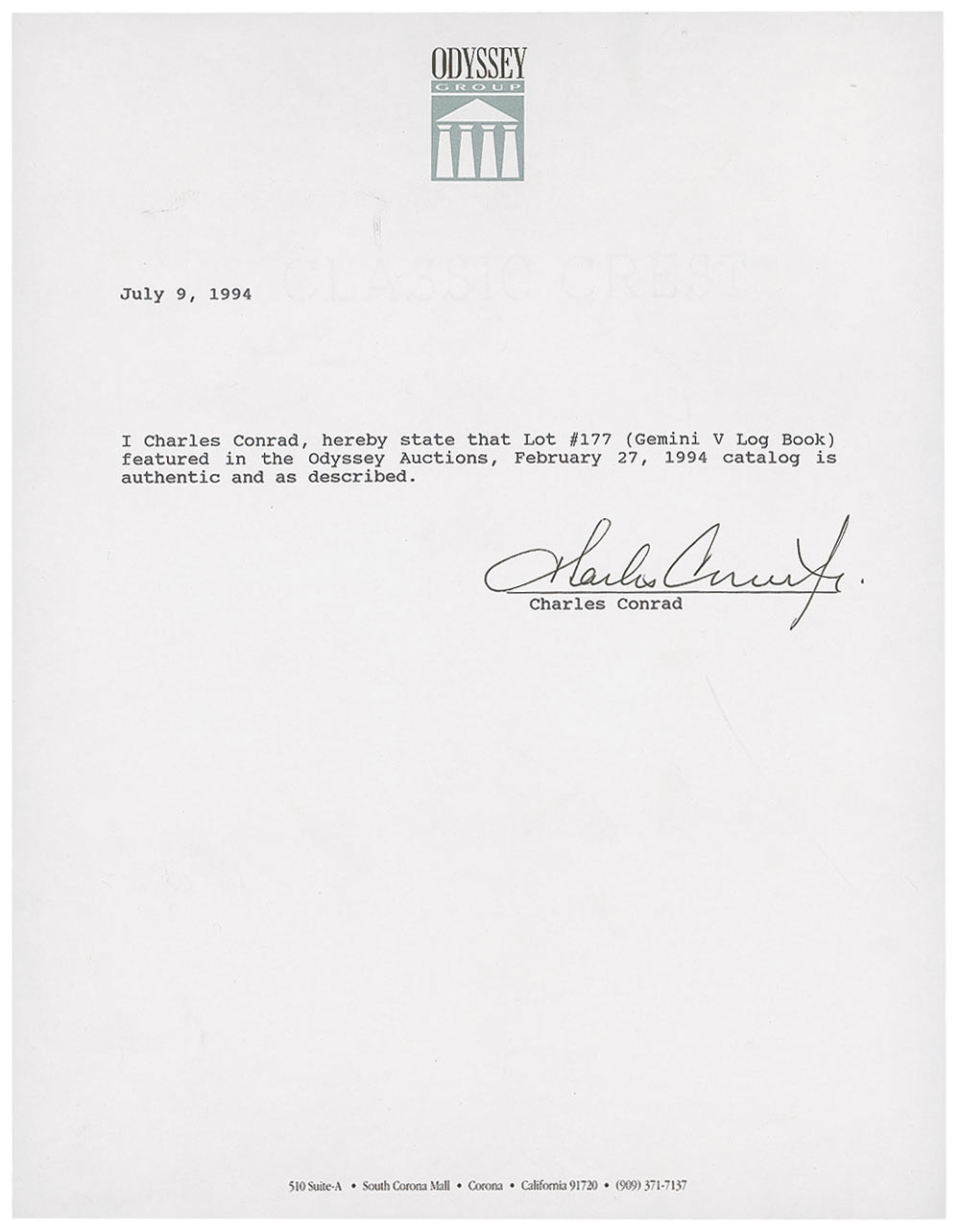 This flight was crucial because the length of time it took to fly to the moon, land, and return would take eight days. This was possible due to new fuel cells that generated enough electricity to power longer missions, a pivotal innovation for future Apollo flights. Conrad often called the mission ‘eight days in a garbage can’—a blunt reference to the small size of the Gemini cabin. An extraordinarily detailed first-person depiction of a Gemini mission from the men who flew it. Accompanied by a letter of authenticity from Charles Conrad.
