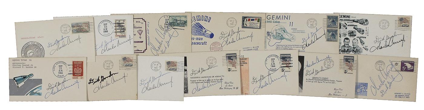 Thirteen different commemorative covers, each with a cachet honoring the mission, each signed in either ink or felt tip by crew members Dick Gordon and Charles Conrad. In fine overall condition.