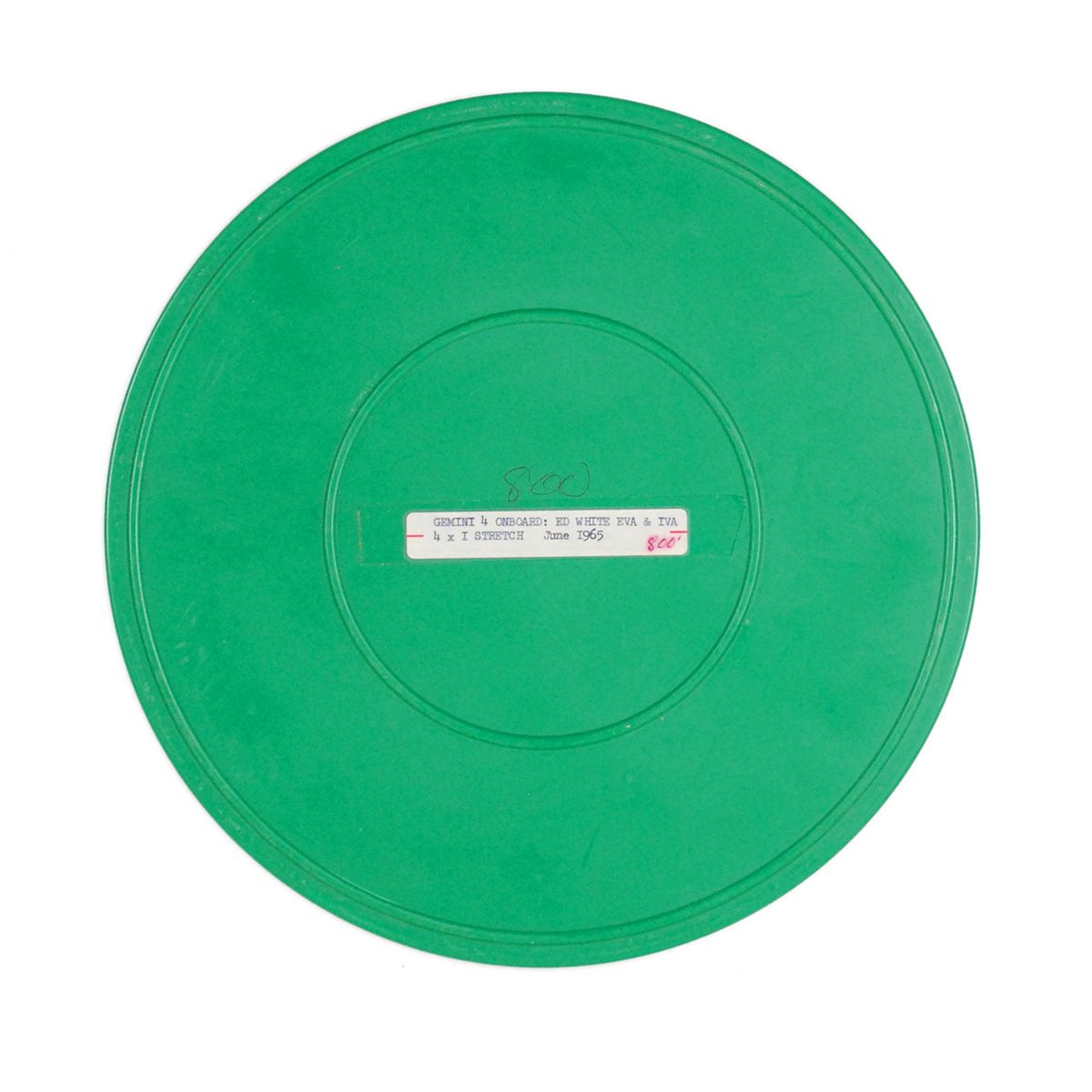 Original canister of film from the Gemini 4 mission. Canister measures 10.75? in diameter, and contains one reel of 16mm film. Label affixed to the cover reads, in part: “Gemini 4 Onboard: Ed White EVA & IVA.” Film is 800 feet in length, and is dated June 1965. A copy of an inventory sheet is included which also adds,“GT-4 EVA External Camera…Astronaut White prepares for egress…Astronaut White leaving GT-4 for walk in space.” In fine condition.