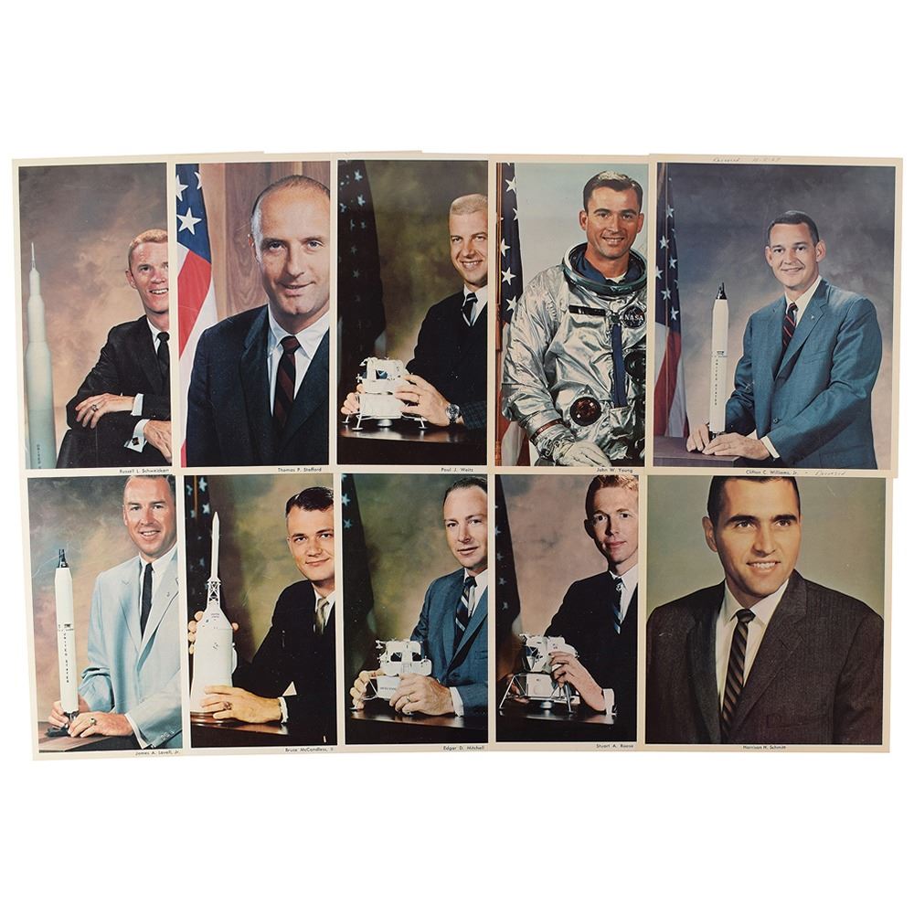 Collection of 24 unsigned official color 8 x 10 NASA lithographs of notable astronauts, including: Bill Anders, Frank Borman, John S. Bull, Scott Carpenter, Jerry Carr, Michael Collins, Charles Conrad, Owen Garriott, John Glenn, Gus Grissom, Fred Haise, Jim Irwin, Don Lind, Jack Lousma, James Lovell, Bruce McCandless II, Edgar Mitchell, Stuart Roosa, Harrison Schmitt, Rusty Schweickart, Tom Stafford, Paul Weitz, Clifton Williams, and John Young. The John Young photo has scuffing to its upper right background area, and borders of the Glenn, Grissom, and Williams photos bear collector notations, otherwise all of the photos are in very fine condition.