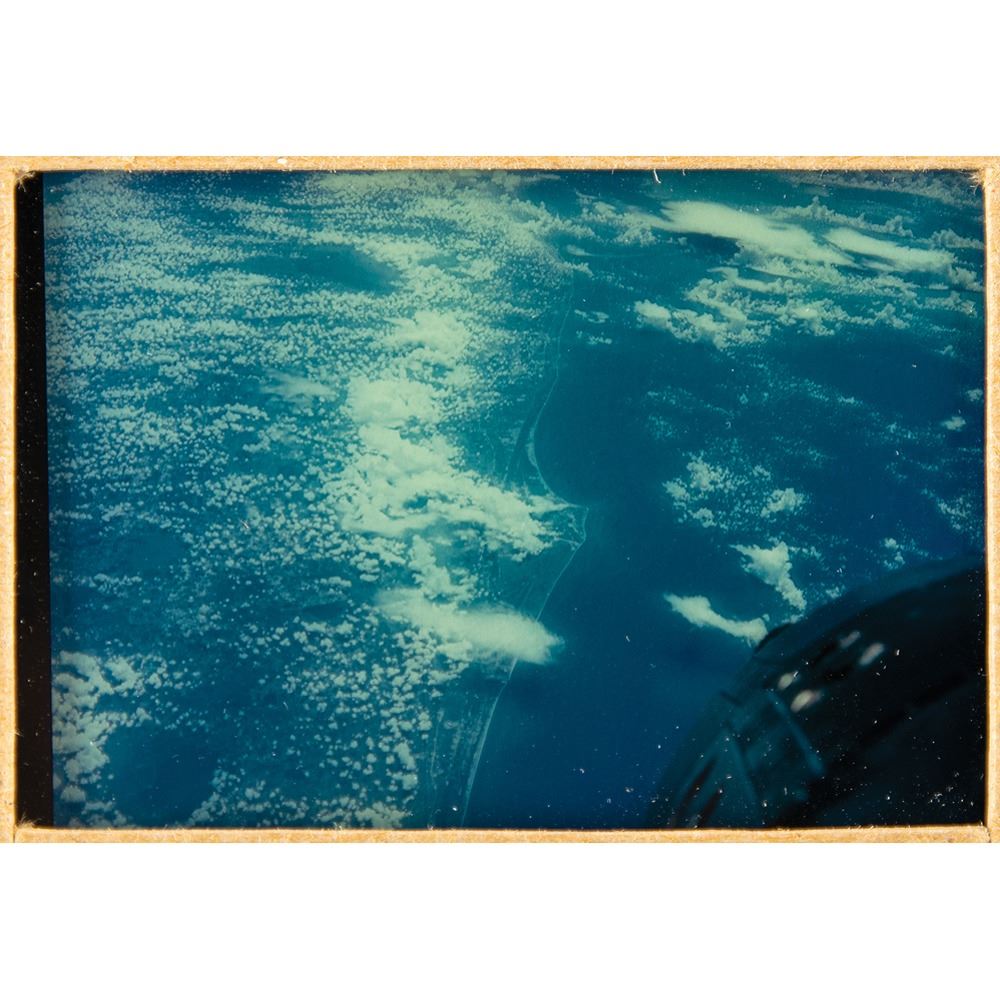 Original color 2.75 x 2.5 negative of an overhead image of the Earth as taken during the Gemini 5 mission. The negative, which shows a distant view of Cape Kennedy from the Gemini spacecraft, is matted to an overall size of 7 x 5. In fine condition.