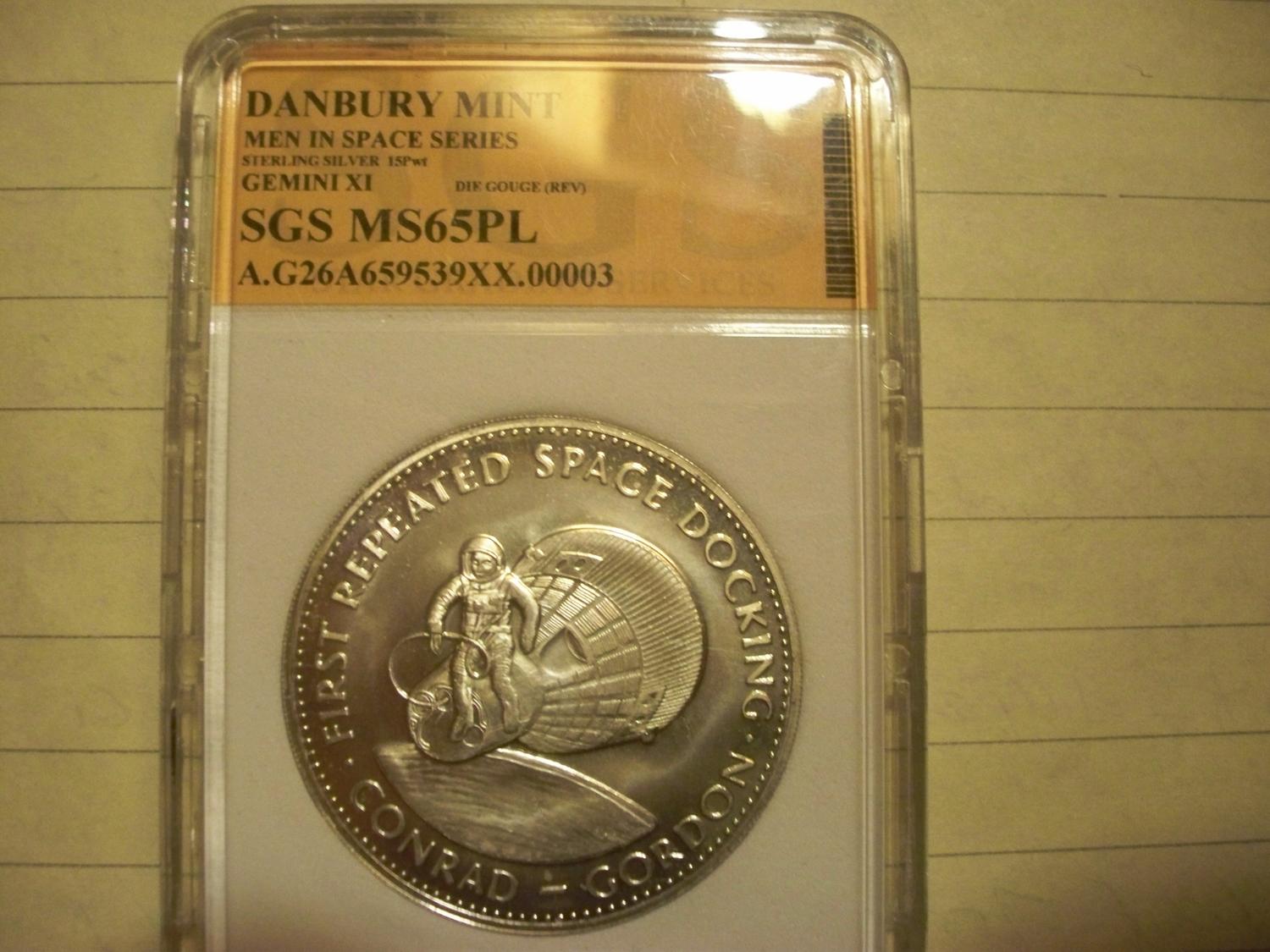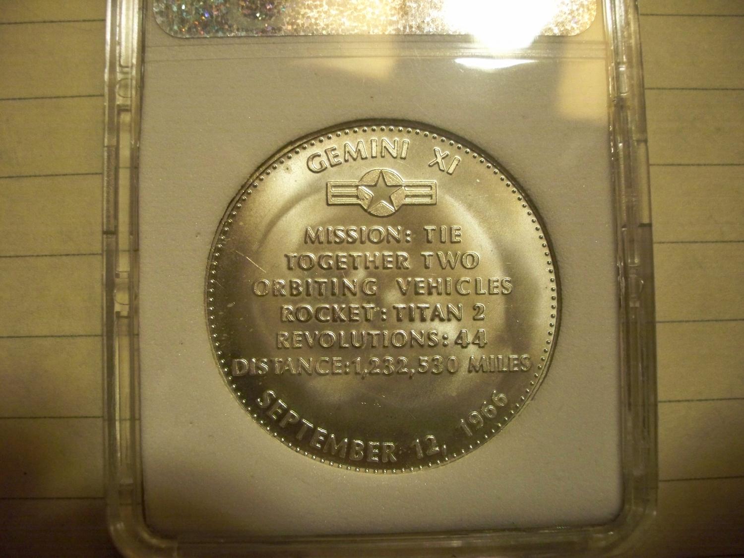 "Gemini XI" Commemorative Sterling Silver Coin from the "Men in Space" series by the Danbury Mint. SGS MS65PL. September 12, 1966 - Mission: tie together two orbitting vehicles.