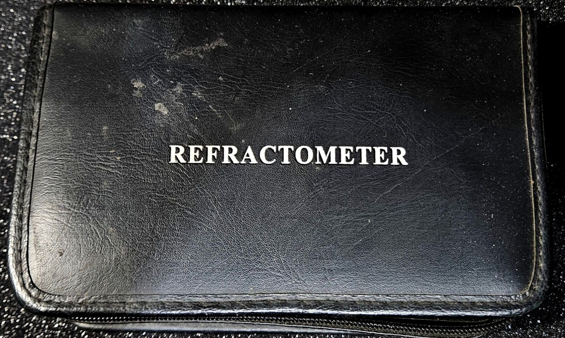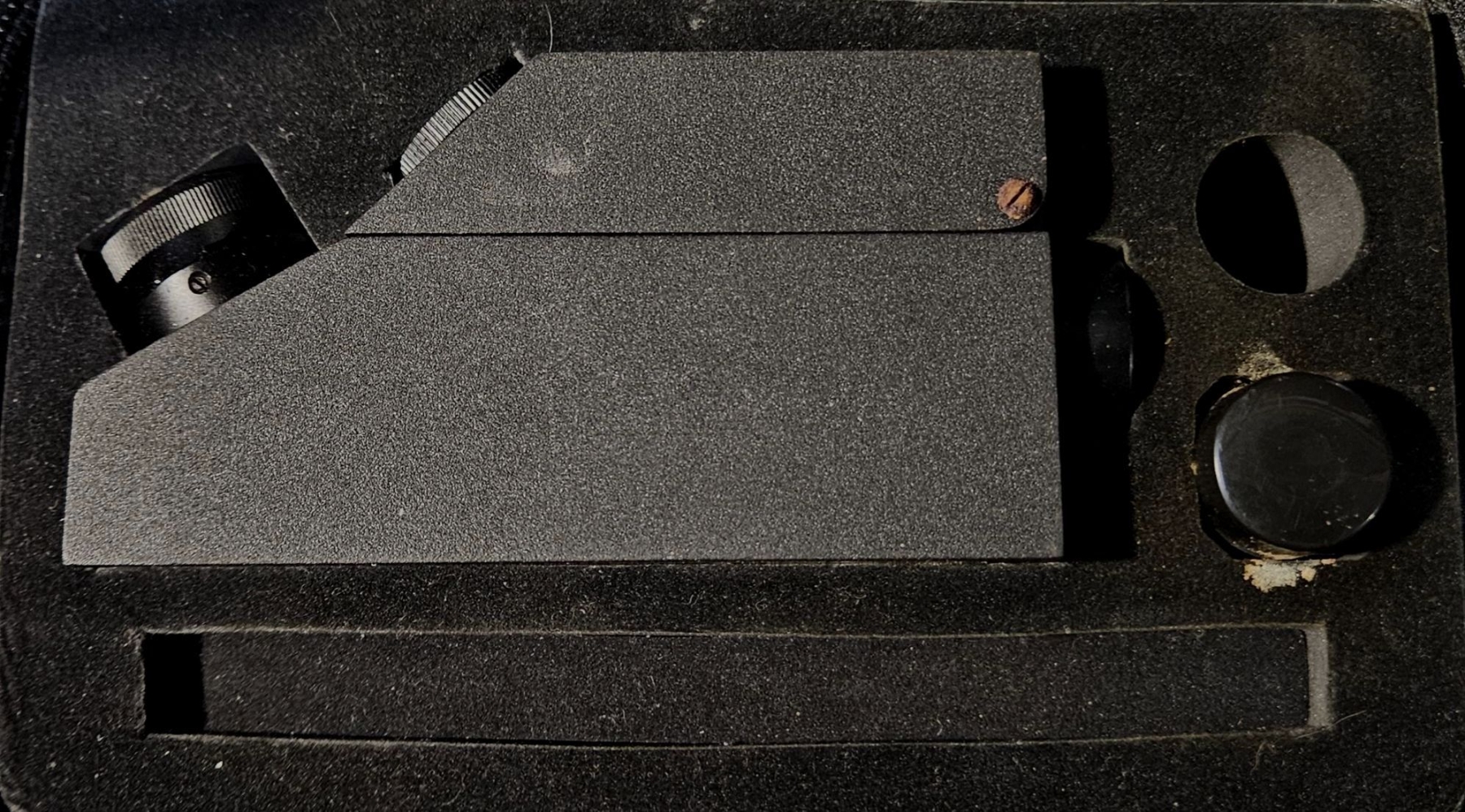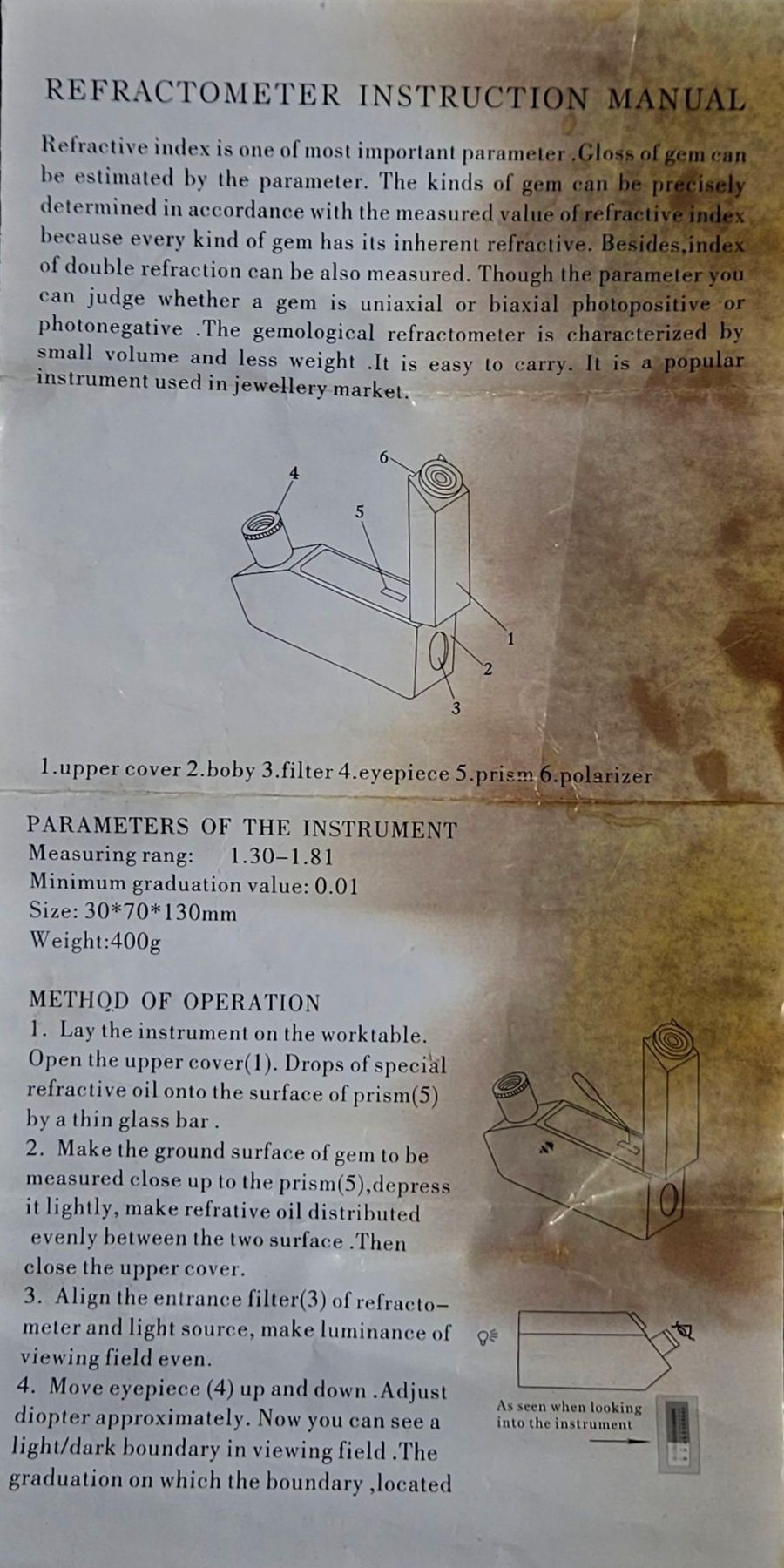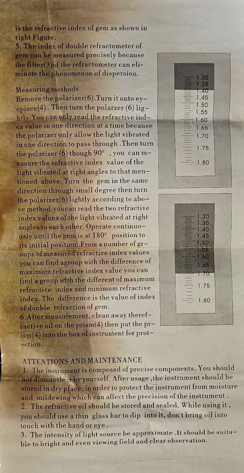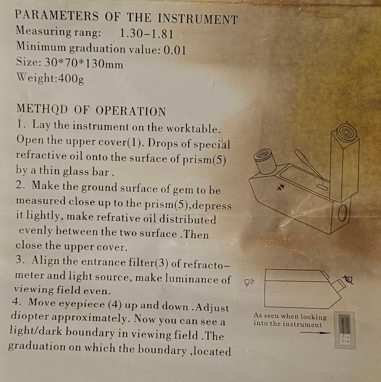 Gem refractometers are essential instruments for identifying gemstones by measuring refractive index (RI) and birefringence. In fair condition with minor rust on screws. Includes carrying case.