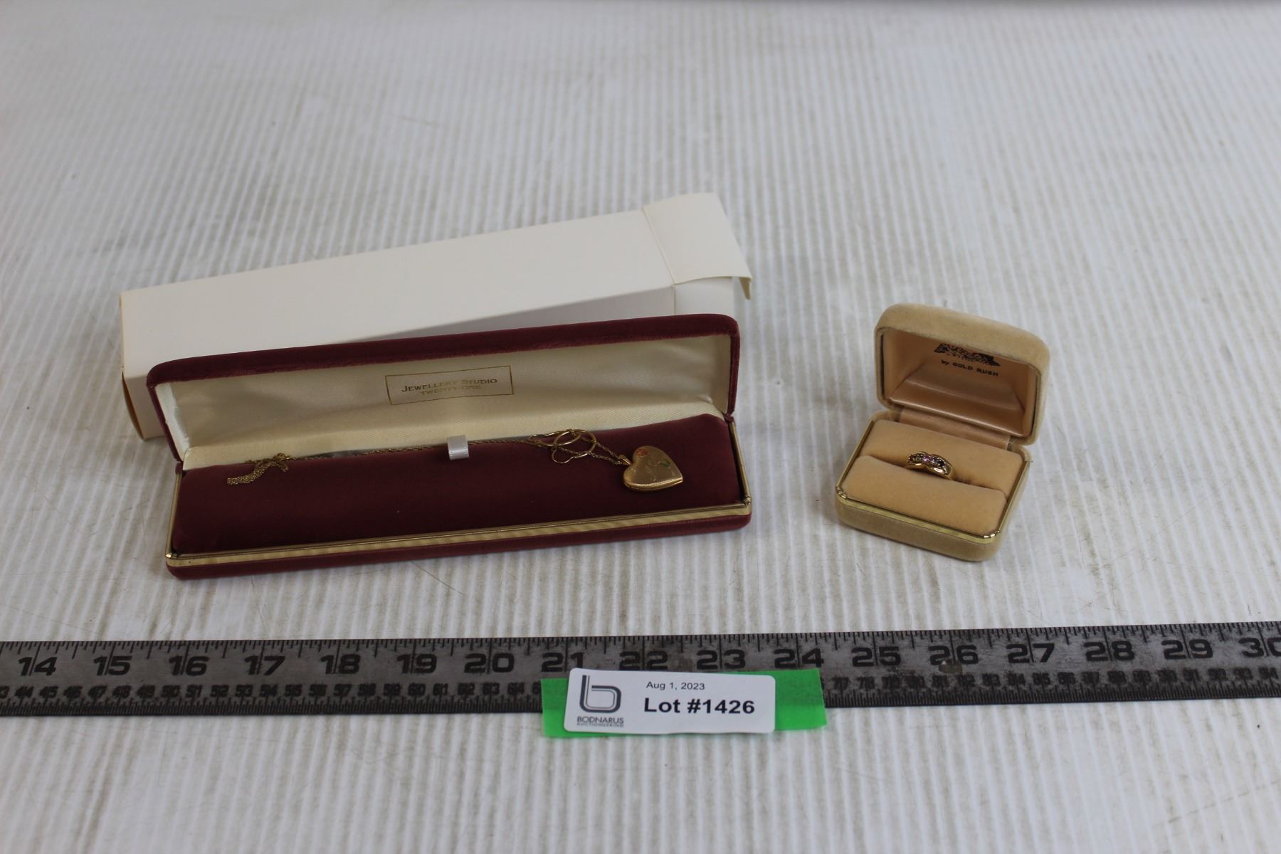Gemstone Family Ring, Mom Locket, Gold Sleepers/Earrings (Not Authenticated)