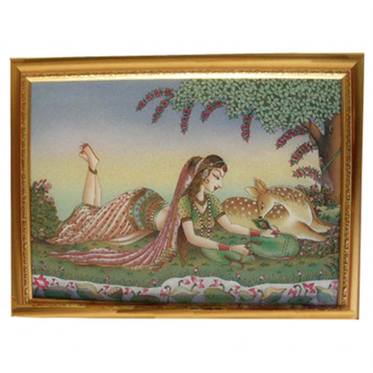Gemstone Painting Ragini Shiliping Tree - Dim: 9x12 inches - Approx. Wgt. 2.5 kgs. Made of Real Gemstone i.e. Amethyst, Calcedony, Cornelian Agate, Garnet, Green Aventurine, Melakite, Red Jasper, Peridot, Turquoise & Yellow Agate ; MSRP: $435