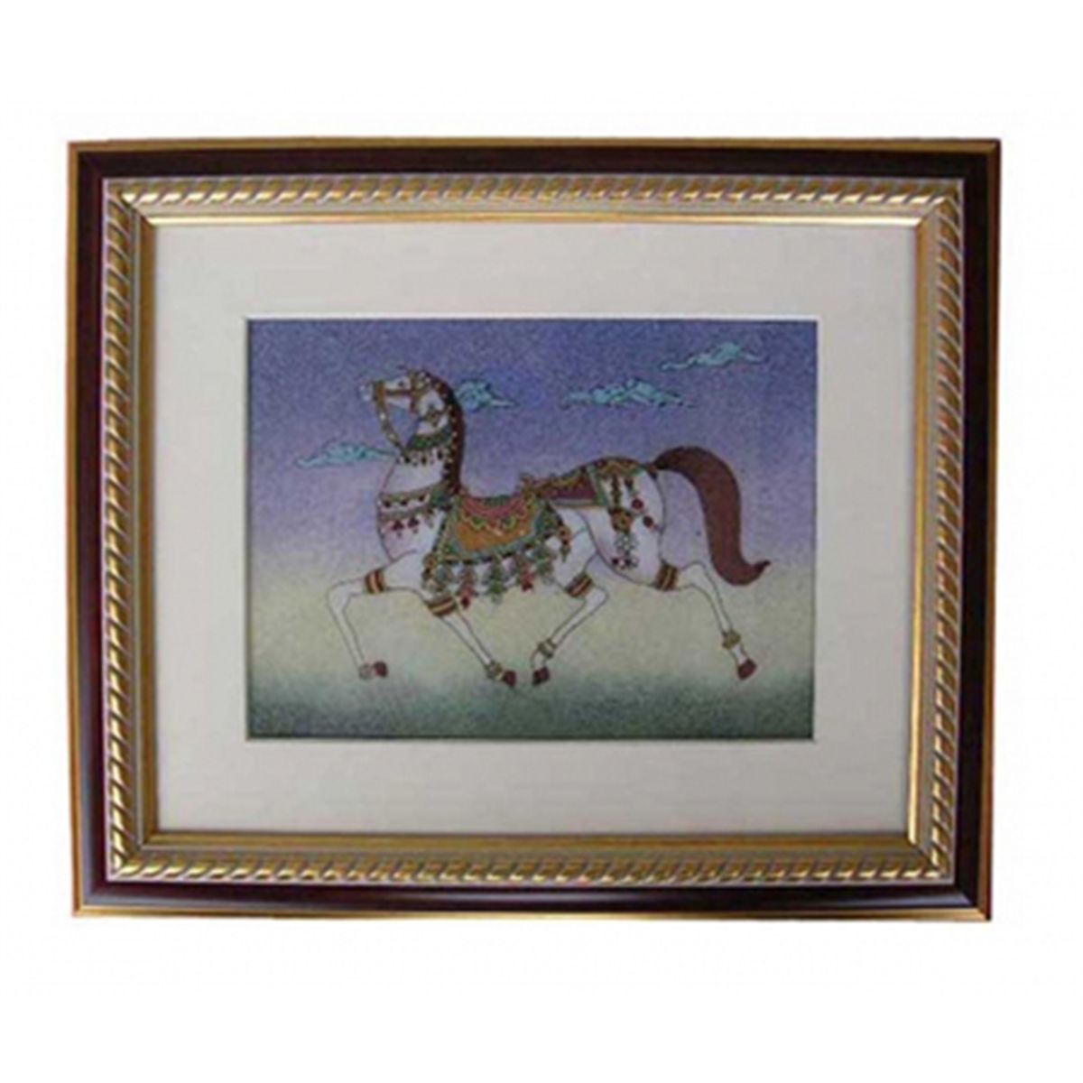 Gemstone Painting Runing Horse - Dim: 9x12 inches - Approx. Wgt. 2.5 kgs. Made of Real Gemstone i.e. Amethyst, Calcedony, Cornelian Agate, Garnet, Green Aventurine, Melakite, Red Jasper, Peridot, Turquoise & Yellow Agate ; MSRP: $435