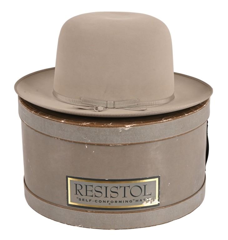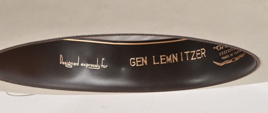 Lyman Louis Lemnitzer (1899 - 1988) U.S. Army General and Chairman of the Joints Chiefs of Staff (1960 - 1962), Lyndon B. Johnson presented Resistol Hat. Stamped in Gold in the inside lining "Johnson City LBJ Ranch" and "Designed expressly for Gen Lemnitzer". General Lemnitzer was Chairman of the Joint Chiefs under JFK who Lyndon Johnson was V.P. with. Hat is like new. Comes in Resistol Hat Box.