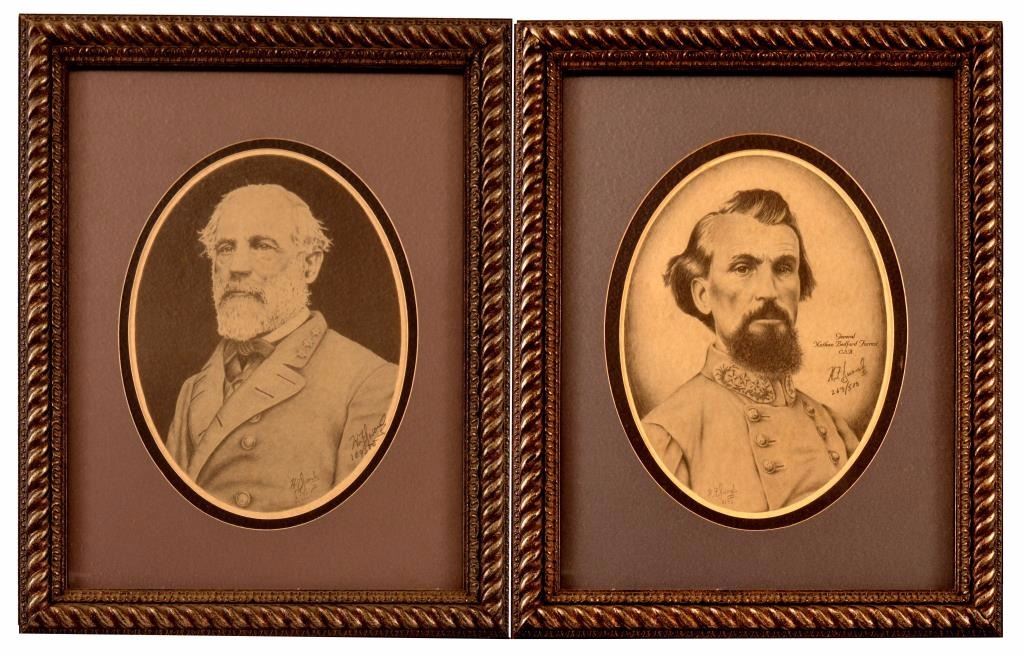 Framed General Robert E. Lee Portrait (10" x  14" oval 180/500) and General Nathan Bedford  Forrest C.S.A. Portrait (10" x 14" Oval  Framed).