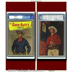 Gene Autry Comics Group Lot (Dell, 1955). Small group of Gene Autry Comics from an original owner collection. They are beautiful, glossy copies. The color and eye-appeal is sensational. Both comics in this group have photo covers, and each of these gorgeous Gene Autry Comics is the highest-graded CGC copy to date. Lot includes: #36 CGC NM+ 9.6 Off-white pages; #51 CGC NM+ 9.6 Off-white pages. Overstreet 2001 NM 9.4 value for group = $165. 2 Important notice: We expect to be auctioning lots at the rate of 200-250 per hour. Sometimes eBay Premier live bid software cannot keep up with that pace, so we strongly recommend that you place a realistic proxy bid now as insurance to avoid disappointment. Also please note that all Heritage/CAA lots purchased through eBay Premier carry a 20% Buyer's Premium.