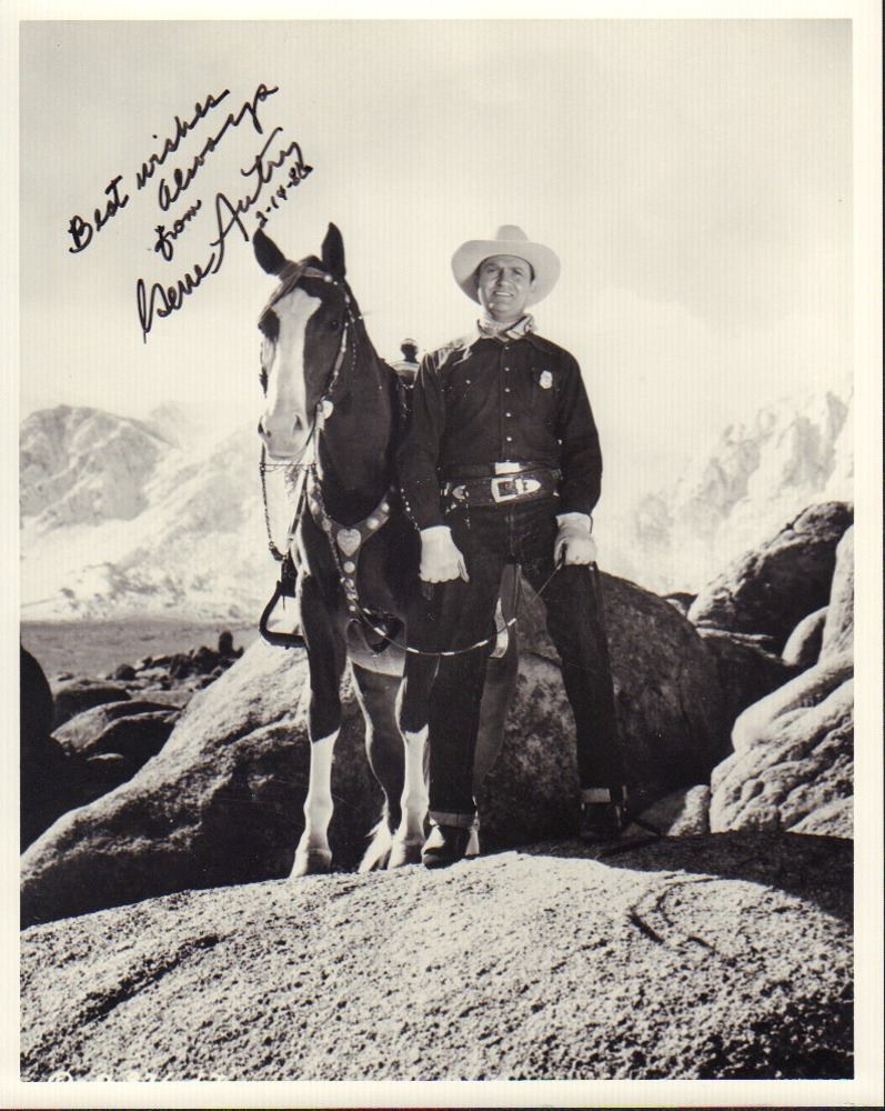 Black and white 8x10 photo signed by Gene Autry. All items come with a certificate of authenticity good for the life of the piece.
