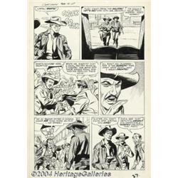 <table><tr><td><TABLE cellSpacing=0 cellPadding=0 width="100%" bgColor=#000000 border=0><TBODY> <TR><TD width="100%"><TABLE cellSpacing=1 cellPadding=3 width="100%" border=0><TBODY><TR><TD width="100%" bgColor=#79735c><FONT face=arial color=#ffffff size=3><B>Description</B> </FONT></TD></TR><TR><TD width="100%" bgColor=#ffffff><FONT face=arial size=2><B>Gene Colan - Original Art for Gunsmoke #76, Complete 5-page Story "The Sheriff's Secret!" (Marvel, 1963).</B></I> Sheriff Dixon and Deputy Nevada were never very far from each other's side, and the townspeople were getting irate -- until they learned "the Sheriff's Secret!" An unusual sagebrush tale written by Stan "the Man" Lee, and featuring early post-EC/pre-hero artwork by the inimitable Gene Colan. These pages measure 14" x 20.5", and feature a fair amount of edge wear, including corner creases and small tears, none of which affects the artwork. <B>Estimate: $600-up</B> </FONT></TD></TR></TBODY></TABLE></TD></TR></TBODY></TABLE><BR><!--<a name="PricesRealized"></a> <table width="100%" border="0" cellspacing="0" cellpadding="0" bgcolor="#000000"> <tr> <td width="100%"> <table width="100%" border="0" cellspacing="1" cellpadding="3"> <tr> <td width="100%" bgcolor="#79735C"> <a name="PR"> <font face="arial" size="3" color="#FFFFFF"> <b>Previous Prices from Heritage Auctions</b> </td> </tr> <tr> <td bgcolor="#F6F6ED"> No Prior Data Recorded </td> </tr> <tr> <td bgcolor="#FFFFFF"> <font face="arial" size="1""> PLEASE NOTE: All prices realized reflect the final hammer price PLUS the buyer's premium in auctions that charge a buyer's premium. Each item has a notation at the top of the listing indicating whether that lot included a buyer's premium. Example: A item that sells with a final hammer price of $100 and a 15% buyer's premium will display with a price realized of $115. All information listed is intended to be as accurate as possible, but errors are possible. Please use this guide carefully and inform us of any inaccuracies. </td> </tr> </table> </td> </tr> </table>