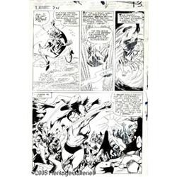 <B>Gene Colan and Vince Colletta - Tales to Astonish #74, page 10 Original Art (Marvel, 1965).</B></I> This all-out action page features Gentleman Gene Colan's half-page panel of Prince Namor, the Sub-Mariner, battling the faceless demons of the deep, in the classic undersea epic, "When Fails the Quest!" The image area of this page is 12.5" x 18.5", and the art is in Excellent condition. <I>From the collection of Richard and Wendy Pini. Richard says: "We grew up watching the Grantray/Lawrence Marvel animated cartoons in the 1960s; being absolute Marvelites (this was before the term "Marvel Zombie" was coined), we loved the cheesy but heartfelt adventures of our favorite comics come to life. These TTA pages provided some of the imagery for one of the cartoons that we saw."</B></I>