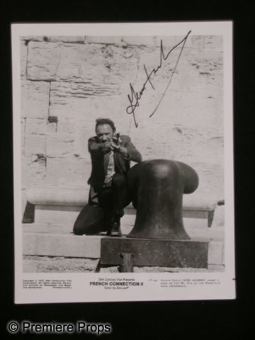 A b&w, glossy autographed photo of actor Gene Hackman from the 1975 drama 'French Connection 2.' The photo is a still from the film and is signed in black ink. The autograph was obtained by a gentleman who has been collecting autographs for over 20 years. (measures approx. 8"x 10")