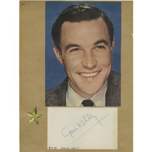 <B>Gene Kelly/Alexis Smith Autographs.</B></I> A 3" x 5" notecard signed by Gene Kelly in black ink, mounted on an album page beneath a magazine photo of him. On the reverse is a similar card inscribed and signed by Alexis Smith in black ink, mounted below a magazine photo of Her. In overall Very Fine condition with some mild tanning.<BR><BR><b>Shipping:</b> Flat Material, Small (<a target="_blank" href="http://www.heritageauctions.com/common/shipping.php">view shipping information</a>)