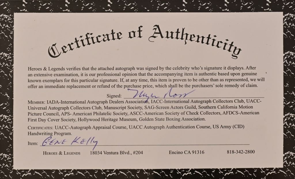 Singing in the Rain movie photo autographed by Gene Kelly. 8x10 inches. GFA Authenticated. HL2044