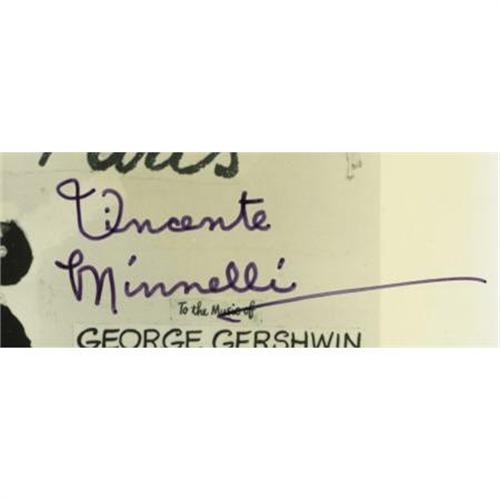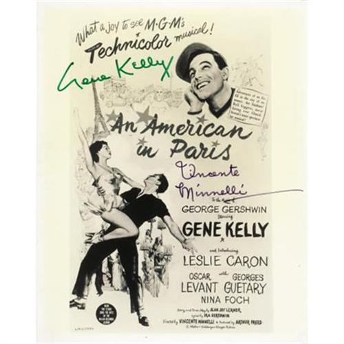 <B>Gene Kelly and Vincente Minnelli Signed Photo.</B></I> A b&w 8" x 10" featuring poster art for the 1951 musical <I>An American In Paris</B></I> signed by Gene Kelly in green marker and by Vincente Minnelli in black. In Excellent condition. <I>Accompanied by LOA from PSA/DNA.</B></I><BR><BR><b>Shipping:</b> Flat Material, Small (<a target="_blank" href="http://www.heritageauctions.com/common/shipping.php">view shipping information</a>)