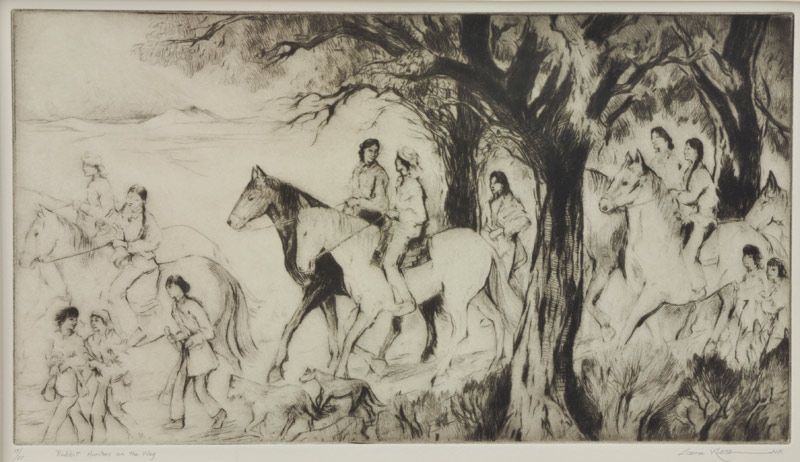 Signed in pencil in margin; l/r, Gene Kloss., N.A. l/l, 17/35 Rabbit Hunters on the Way.