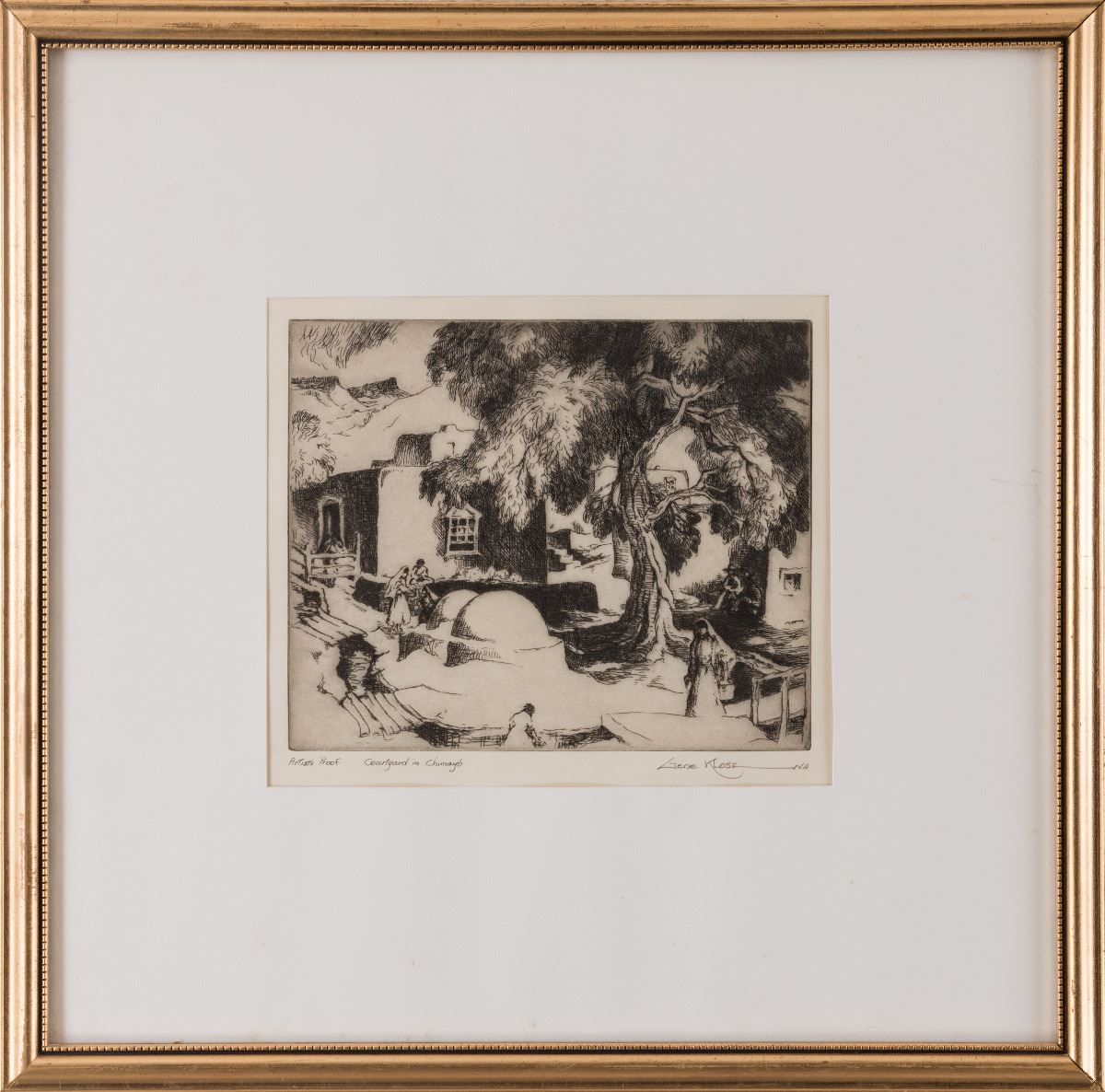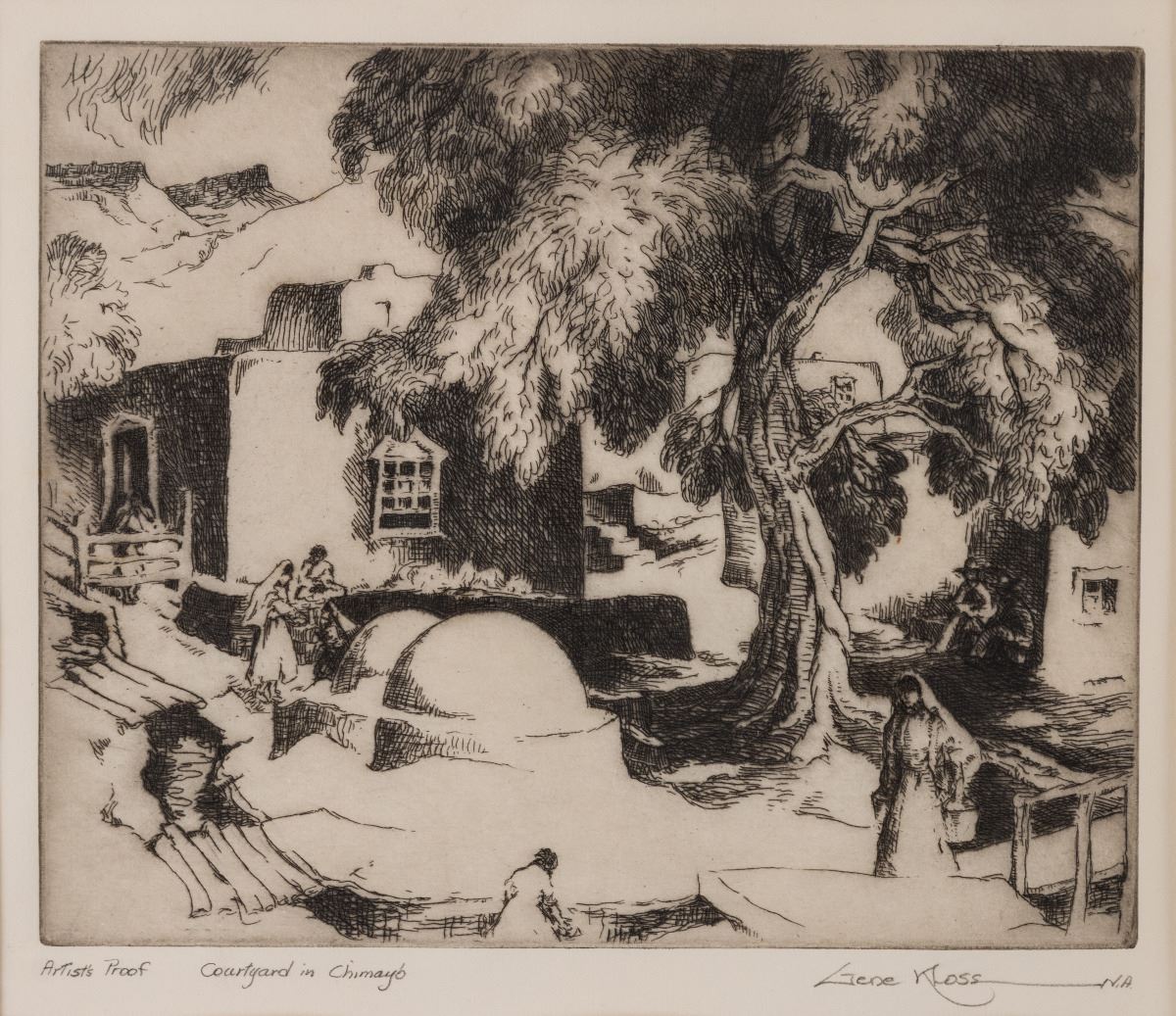 Gene Kloss (1903-1996). Courtyard Chimayo. 7 ¼" x 9" etching. Signed lower right margin N.A., titled lower left, Artist's Proof.