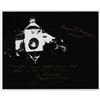 Satin-finish 10 x 8 photo of the disabled Apollo 13 capsule, signed in gold ink, "Eugene F. Kranz, 'Flight,'" and "'Flight‰Û_we'd better think about gettin' in the LM.' 4/13/70, Sy Liebergot, Apollo 13 EECOM." In fine condition.