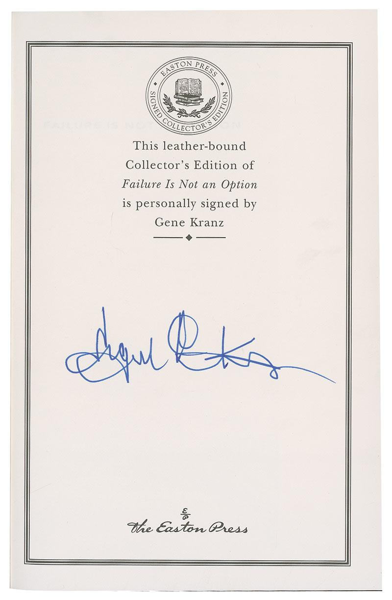 Signed book: Failure Is Not an Option. Collector’s edition. Connecticut: Easton Press, 2000. Leatherbound hardcover, 6.25 x 9.25, 415 pages. Signed on a special prefatory page in blue felt tip. In fine condition.