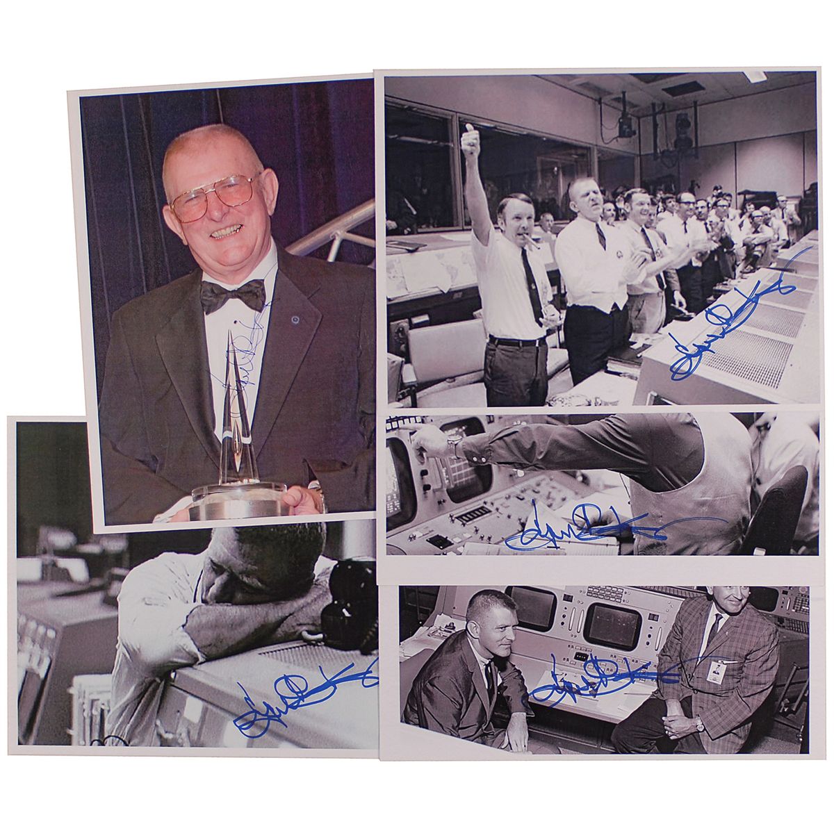 Five laserprint photos, 8.5 x 11 and 11 x 8.5, including one color, each signed in blue felt tip or ink by Kranz. In fine condition.