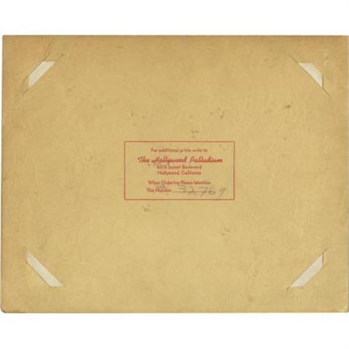 <B>Gene Krupa Signed Photo Cover.</B></I> A souvenir photo holder from the Hollywood Palladium, signed in pencil on the inside cover by legendary Jazz drummer Gene Krupa. In Fine to Very Fine condition with some wear and discoloration.<BR><BR><b>Shipping:</b> Flat Material, Small (<a target="_blank" href="http://www.heritageauctions.com/common/shipping.php">view shipping information</a>)