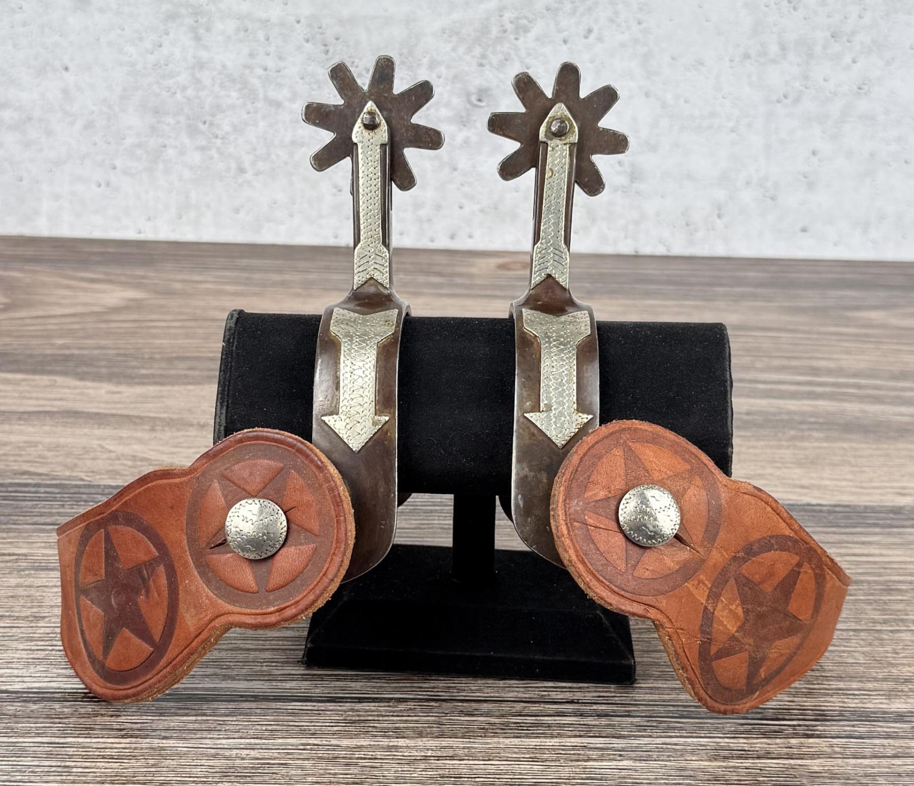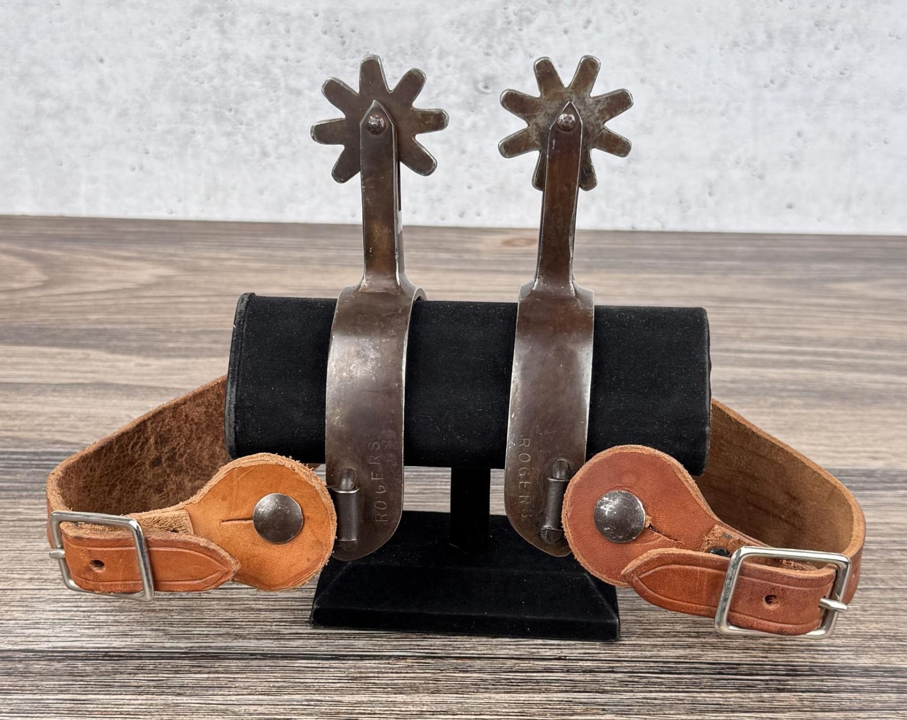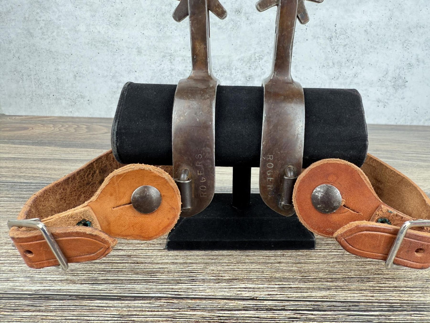 6 7/8" long. Gene Rogers grew up in the Missouri Ozarks leaving home at age 15 to work on ranch in Oklahoma. After high school he worked as a fire protection pipe fitter in Denver, Colorado where he also repaired saddles in his spare time. According to Ned & Jody Martin’s Modern Makers book, Gene decided to take up spur and bit making in the early 1980s after losing a Crockett spur while on a trail ride needing to replicate that missing spur. He retired from his pipe trade in the early 1990s and took up bit & spur making in Golden, Colorado where he built both old and newer styles also doing some leather work and repairing cowboy gear. Gene has always been generous with his knowledge and helped both Mike Dill and Don Pierce learn the cowboy trade.