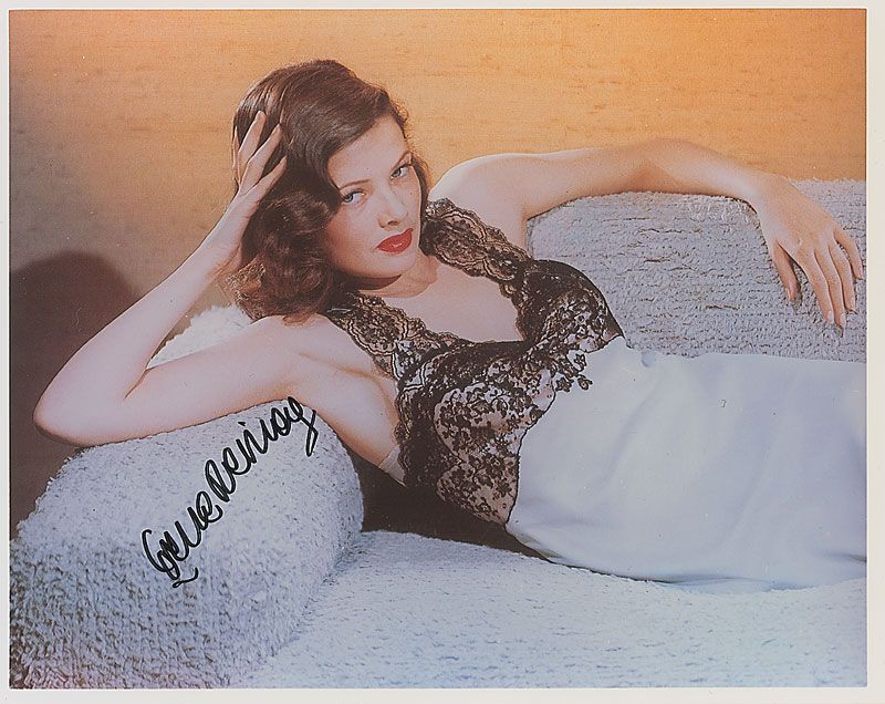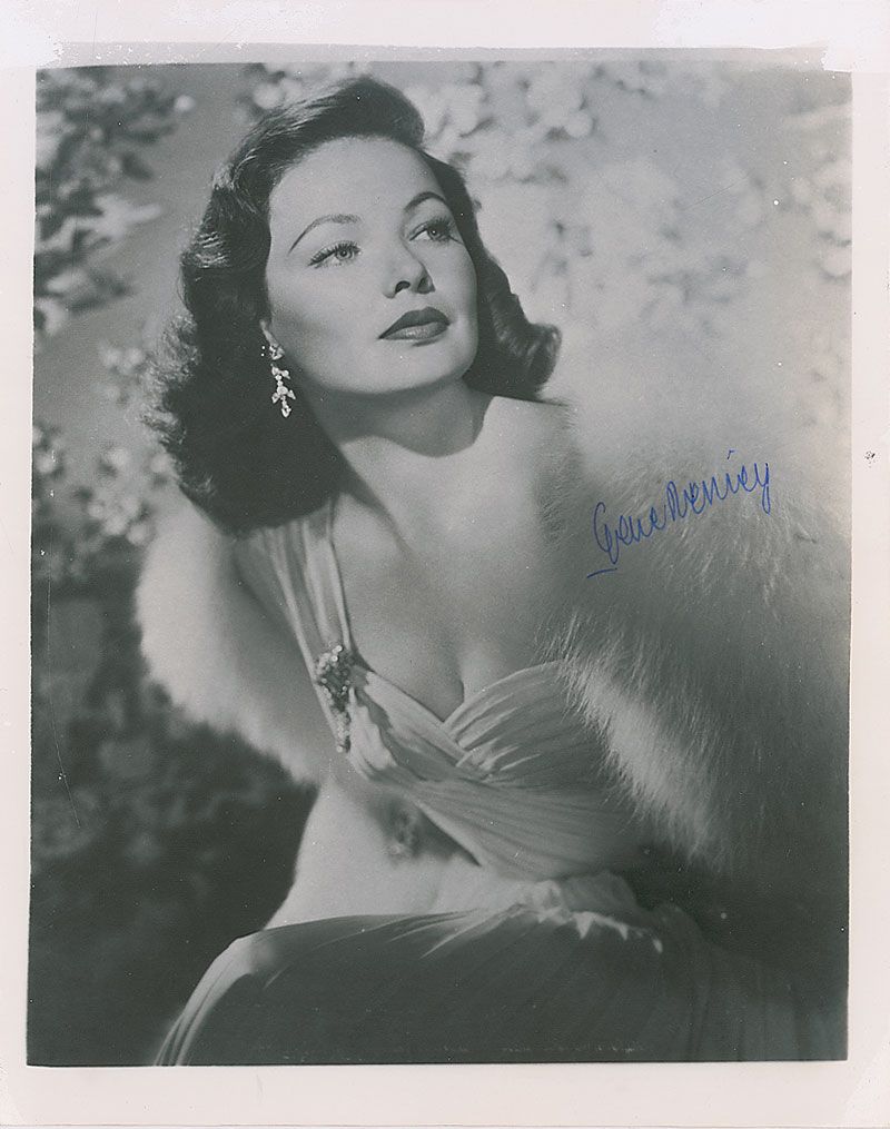 Two photos of Tierney, one color, 8 x 10 and 10 x 8, each signed in blue or black ink. A light diagonal crease to one photo, otherwise overall fine condition.