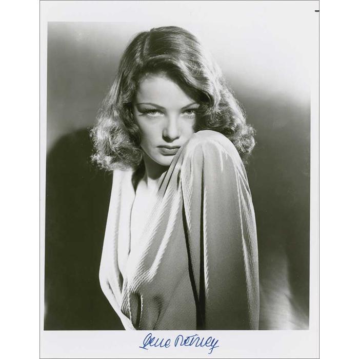 Sultry glossy 8 x 10 photo of Tierney giving a ‘come hither’ look, signed in the lower border in blue felt tip. In very fine condition. Pre-certified PSA/DNA and RRAuction COA.