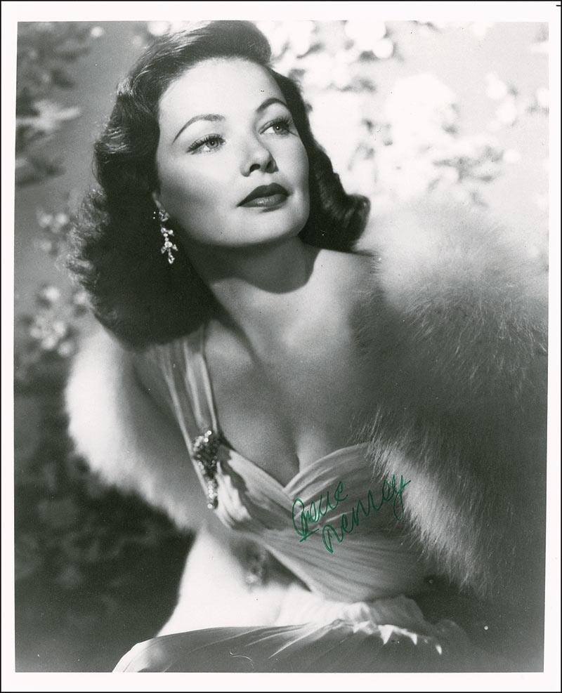 Lovely glossy 8 x 10 photo of Tierney in an elegant gown and stole, signed in green felt tip. In very fine condition. Pre-certified PSA/DNA and RRAuction COA.