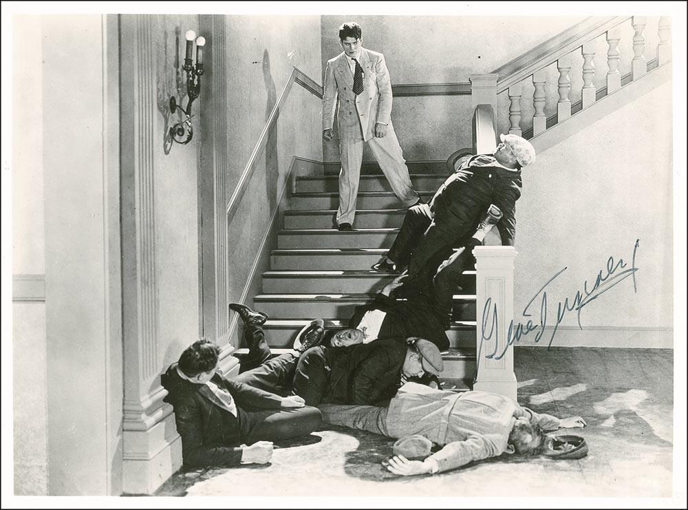 Vintage glossy 10 x 8 photo from The Fighting Marine, the boxing champ’s only film role, signed in felt tip, “Gene Tunney.” In fine condition, with a few surface impressions, light corner bends, and a slight chip along the top edge.