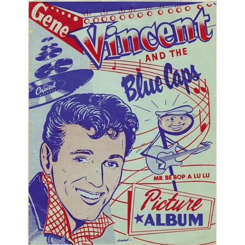 <B>Gene Vincent "Picture Album" Program.</B></I> A rare promotional booklet featured photos of live performances (including his appearance on the Ed Sullivan Show) and of Vincent's contemporary "buddies", including the Everly Brothers, Ricky Nelson, Buddy Knox, Paul Anka, Frankie Avalon, Sonny James, and Bill Justis. In Fine condition with some wear, tanning, and a very small areas of water damage to the back cover, and a spine that has mostly split. Booklet has a small stain on the back cover that affects all but the first three pages and rusty staples with some migration onto the center pages. Otherwise, it's in Fine to Very Fine condition, with lots of original color on the front and nice page quality. Quite a unique piece of memorabilia of a Rock legend.<BR><BR><b>Shipping:</b> Flat Material, Small (<a target="_blank" href="http://www.heritageauctions.com/common/shipping.php">view shipping information</a>)