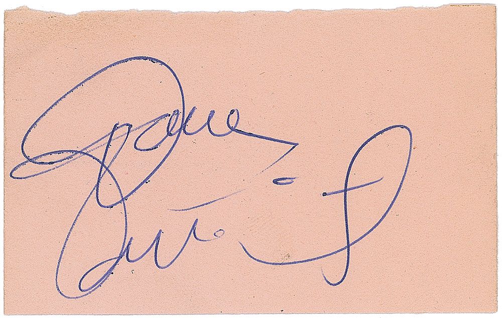 Vintage circa 1963 ballpoint signature, “Gene Vincent,” on a peach 3.25 x 2 slip. In fine condition.