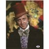Color glossy 10 x 13 photo of Gene Wilder in his memorable turn as the title character from the 1971 film Willy Wonka & the Chocolate Factory, signed in blue felt tip. In very good to fine condition, with light scuffing, small surface creases, and a PSA/DNA label affixed to lower right corner (certificate not present). Obtained by noted in-person specialist Nelson Deedle.