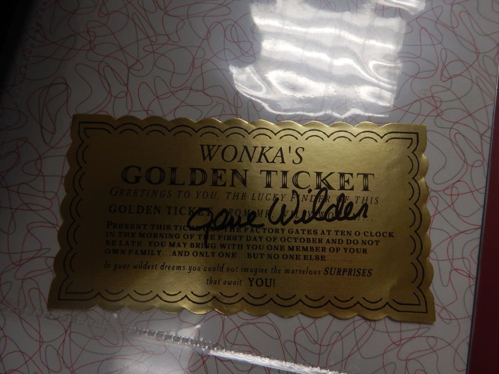 Gene Wilder signed golden ticket from the film Willy Wonka and the Chocolate Factory. The ticket was signed at his home in Connecticut. The signature has been verified by Global Authentics and issued number GV842620. All items come with a certificate of authenticity good for the life of the piece.