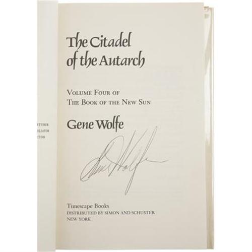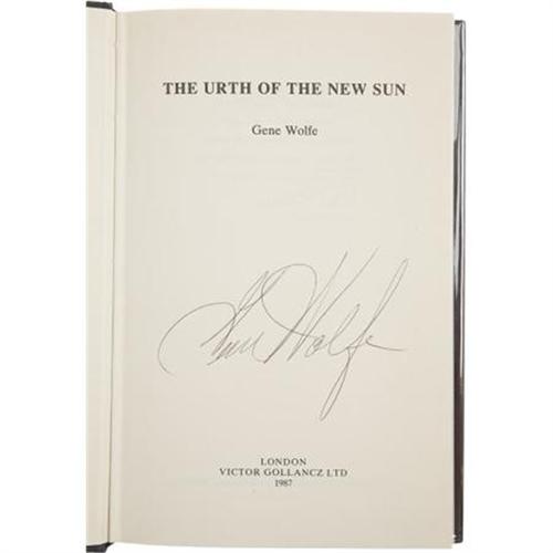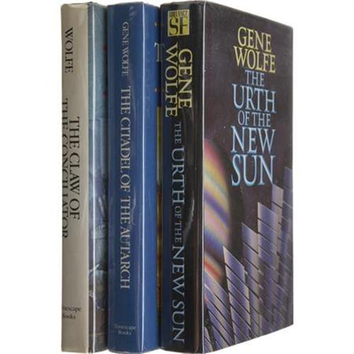 <B>Gene Wolfe: Three Signed Books.</B></I> Includes the following:<BR><B><I>The Claw of the Conciliator.</B></I></B></I> (New York: Timescape, 1981), first edition thus, 303 pages, black cloth over black boards, 8vo, dust jacket. Condition (book/ dj): very good/ very good.<BR><B><I>The Citadel of the Autarch.</B></I></B></I> (New York: Timescape, 1983), autographed reprinted edition, 317 pages, black cloth over yellow, 8vo, dust jacket. Condition (book/ dj): fine/ fine.<BR><B><I>The Urth of the New Sun.</B></I></B></I> (London: Victor Gollancz, 1987), first edition, 372 pages, black boards, 8vo, dust jacket. Condition (book/ dj): fine/ very good.<BR><BR><b>Shipping:</b> Books & Catalogs (<a target="_blank" href="http://www.heritageauctions.com/common/shipping.php">view shipping information</a>)