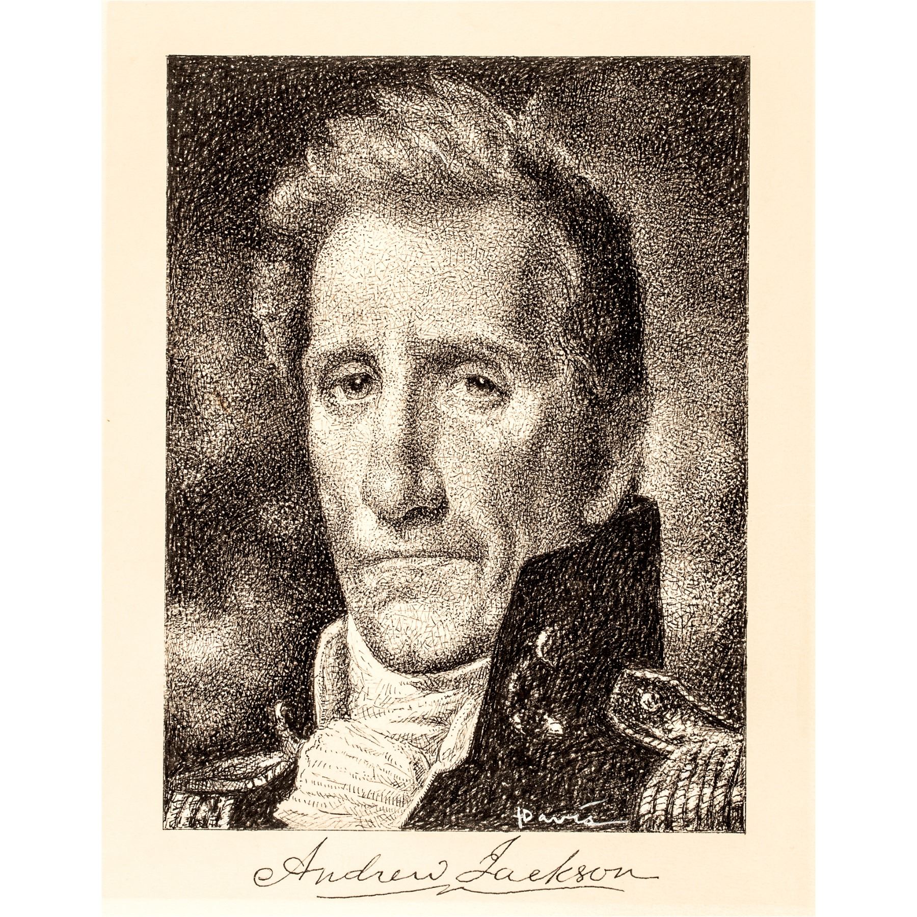 Exceptional Original Pen & Ink Drawing of Major General ANDREW JACKSON, Signed Herndon Davis, after Walch