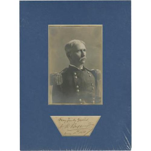 <B>General Adelbert Rinaldo Buffington Photograph and Signature</B></I> “<I>A. R. Buffington</B></I>”. Photograph 4.25” x 6.25”, mounted and matted with signature to an overall size of 9” x 12”, in protective plastic wrap, in near fine condition. General Buffington served as the Army's Chief of Ordnance from 1899 to 1901. <BR><BR><b>Shipping:</b> Flat Material, Small (<a target="_blank" href="http://www.heritageauctions.com/common/shipping.php">view shipping information</a>)