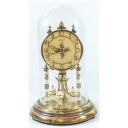 Old German 8-day clock by Hermle, circa mid 20th century, gilt metal base, the mechanism spreads over two enamelled flower pages with white background