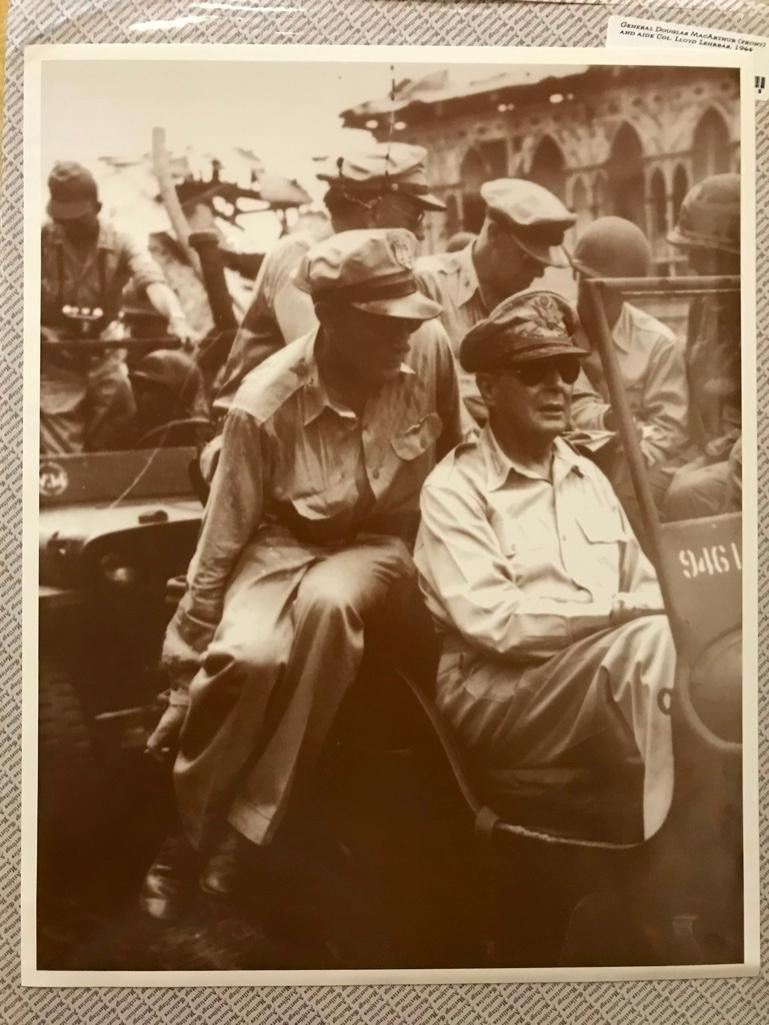 General Douglas McArthur & aide Col. Lloyd Lehrbas c. 1944, sepia-tone photo print. Created in the early 1990's for The American Heritage Galleries, on heavy cardstock. 11" X 14" in original packaging.Â