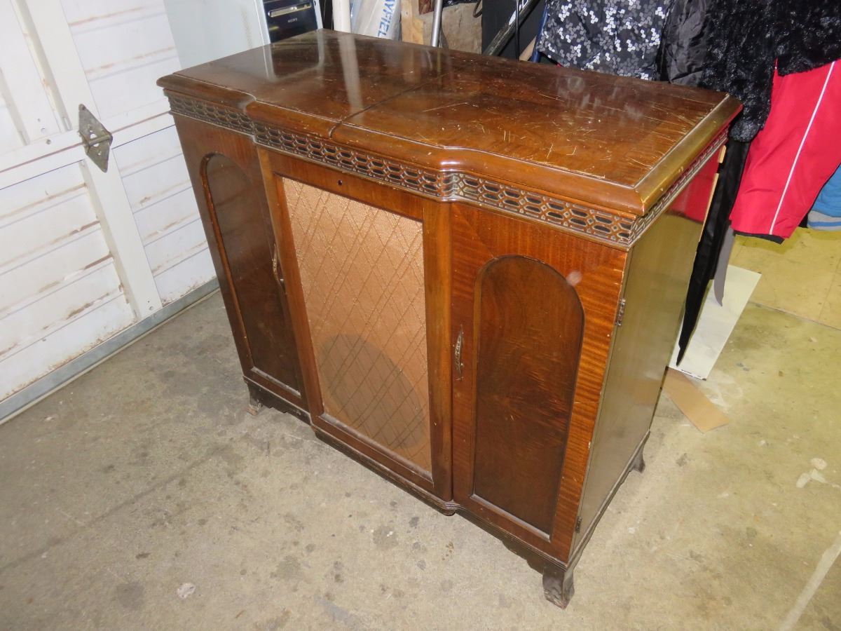 Model K-9. Tube radio, does tune in to AM! Record player does not work. Sorry, this item cannot be shipped. LOCAL PICKUP ONLY.