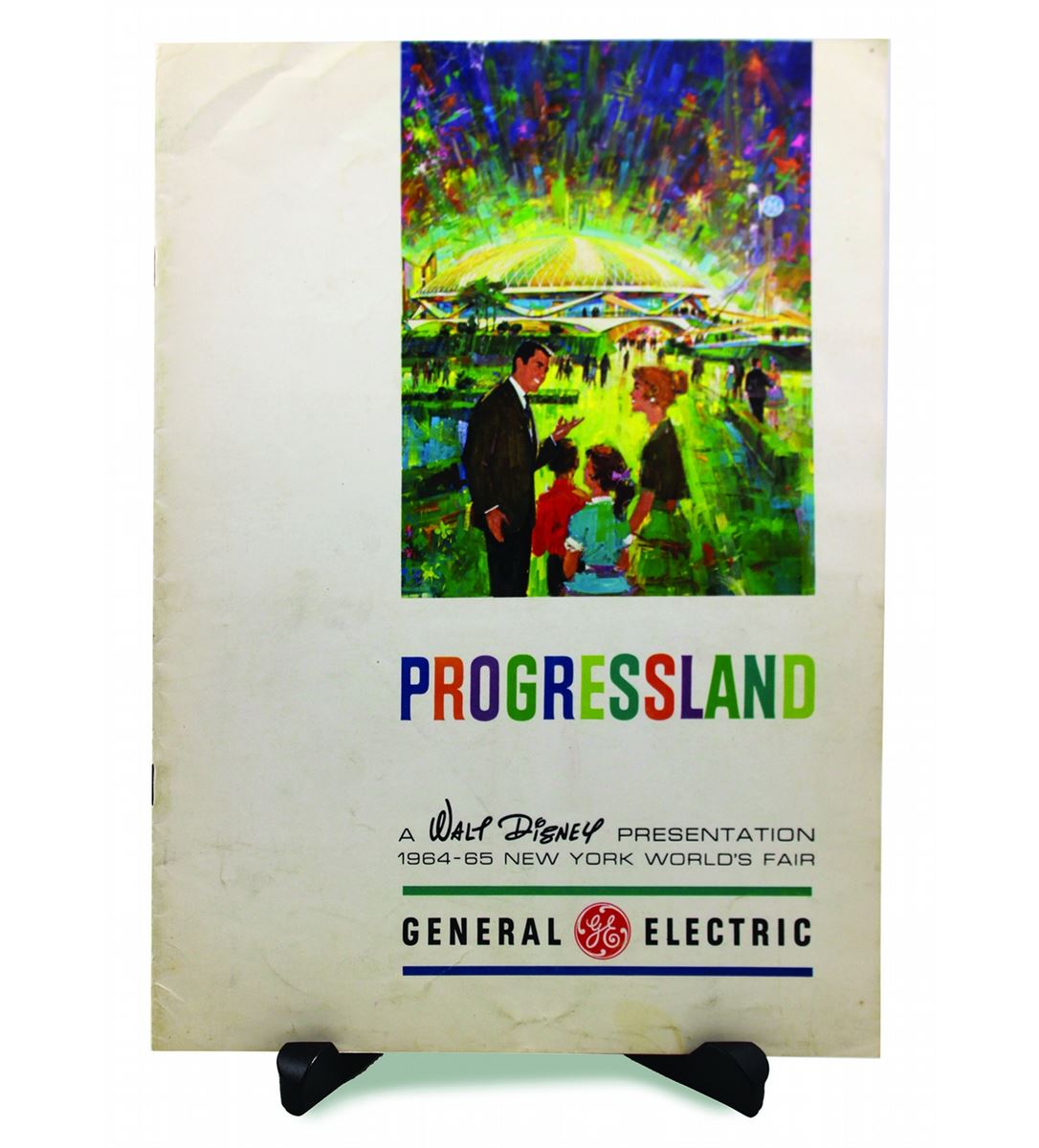 (World's Fair, 1964) Beautiful (10) page press book promoting Walt Disney and General Electric's Progressland at the World's Fair, including the Carousel Of Progress. In good condition with toning and wear from use throughout.