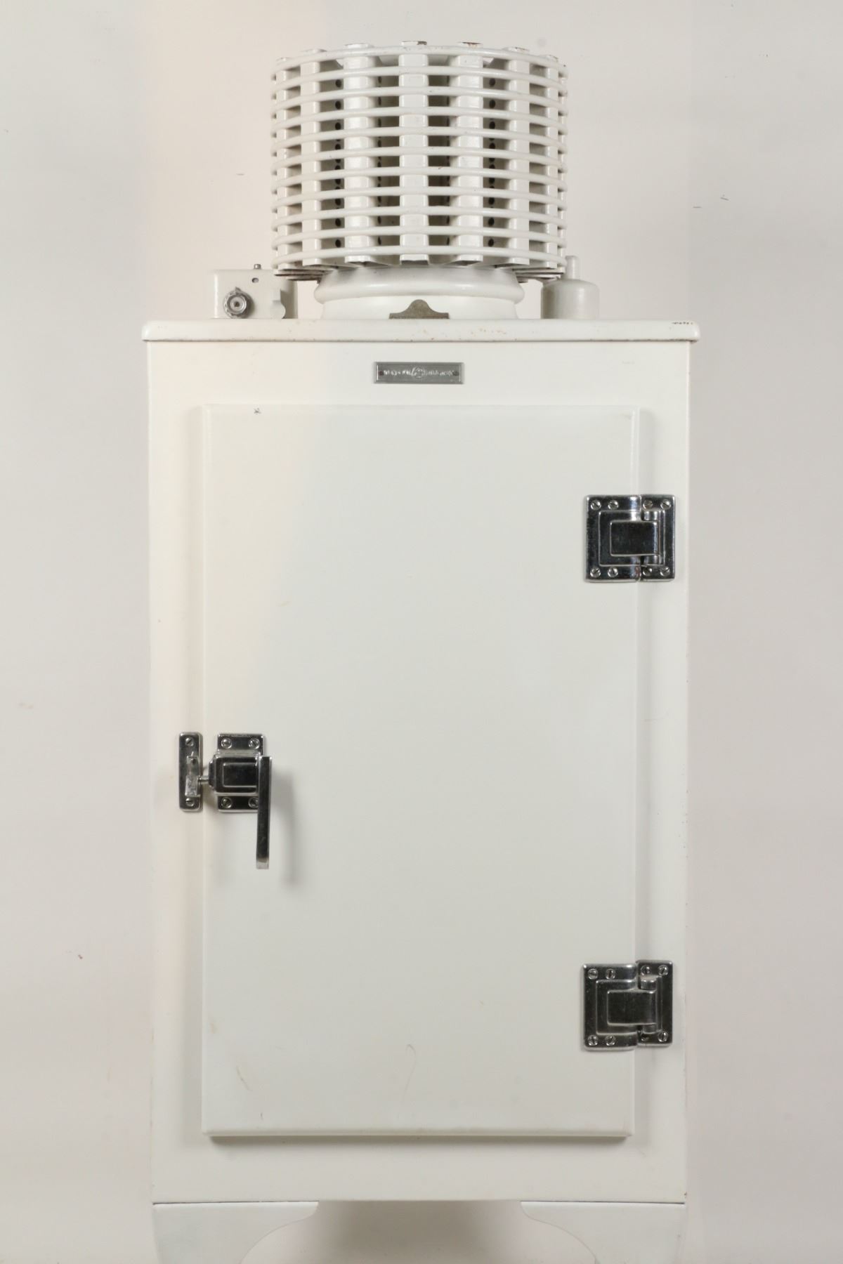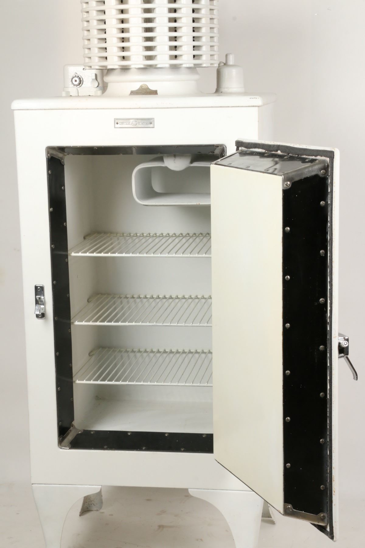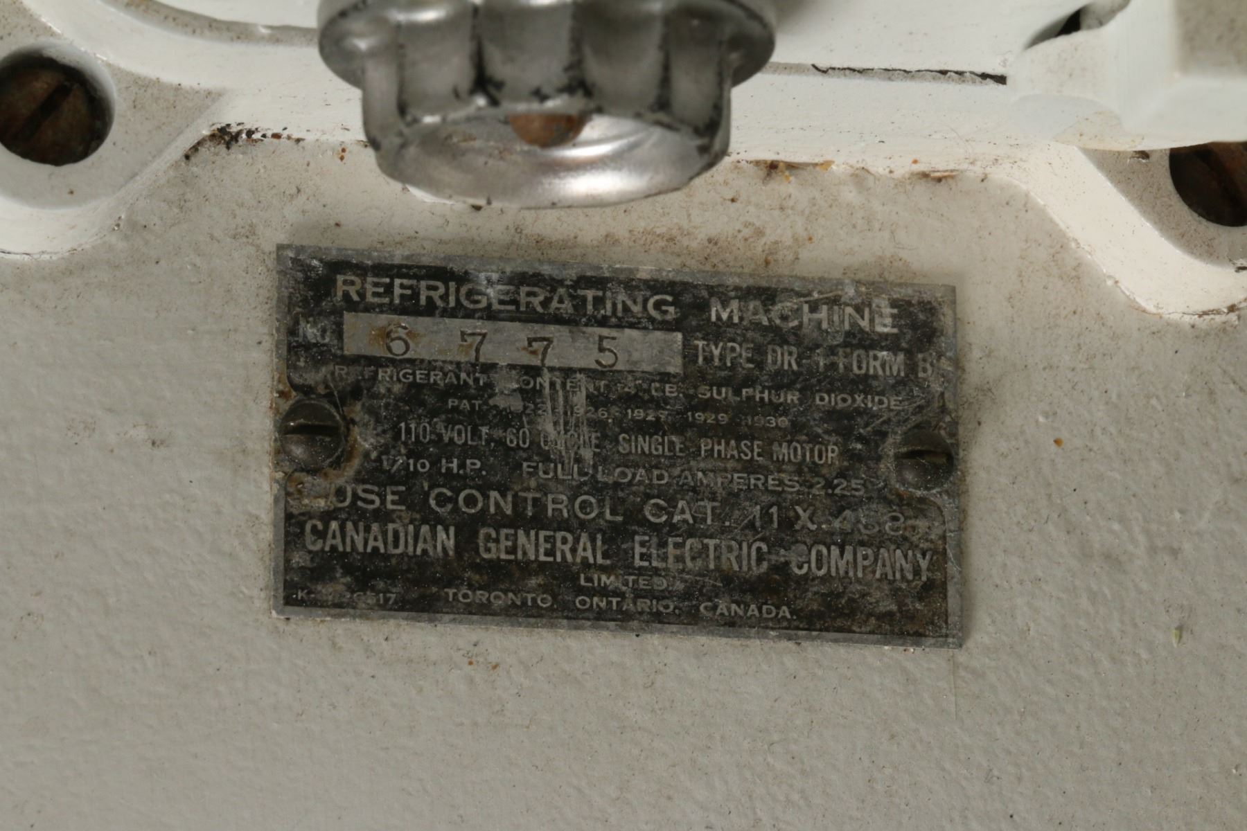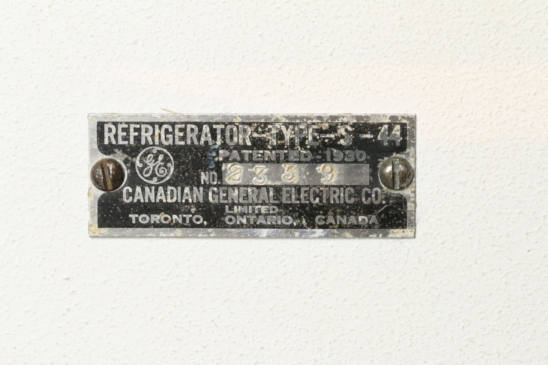 Canadian. Circa 1930. Marked, "Refrigerator-Type-S-44", "Canadian General Electric Co. Toronto Ontario Canada". 63" x 23.5" x 21". Re-painted. Original insulation replaced with modern materials. Functions properly. 110v standard plug. $800-1200.